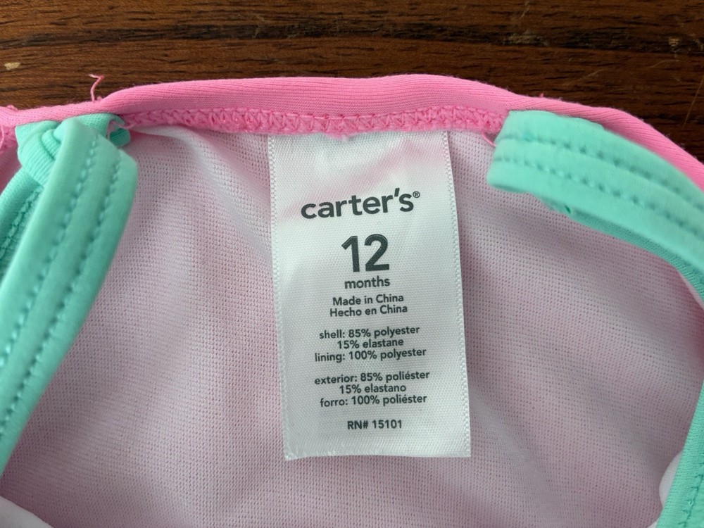 Carter's Baby Girls 1-Piece Glitter Rainbow Heart Cross Strap Swimsuit Pink 12M. Condition is pre-owned. Smoke free, pet free home. Shipped via USPS Ground Advantage. In very good condition. Free of rips or stains.
