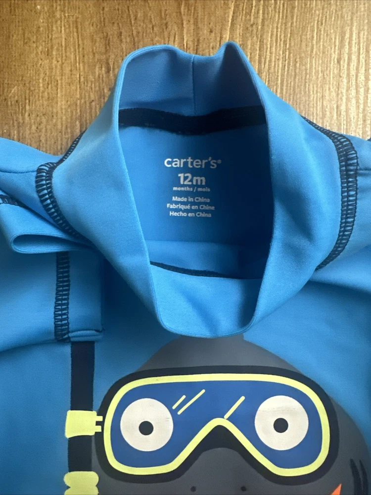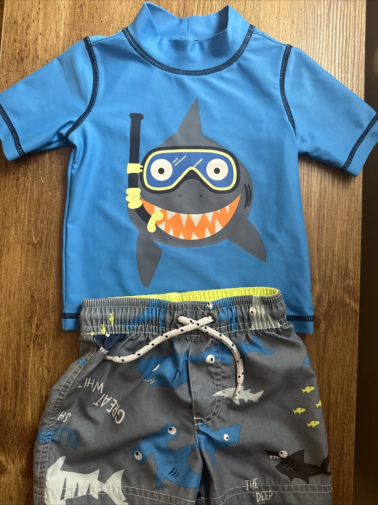 Get your little one ready for a day at the beach or pool with this adorable Carter's Shark Swim Trunks and Rash Guard Set. Designed for babies and toddlers aged 12 months, this swimwear set features a colorful shark theme that will make your little one stand out. The swim shirt is perfect for protecting your baby's delicate skin from the sun's harmful rays, while the trunks provide a comfortable fit for your little one to move around in. The set includes both the swim shirt and trunks, making it a convenient all-in-one purchase. Your baby will love the water and you'll love the quality of this Carter's swimwear set for an affordable price.