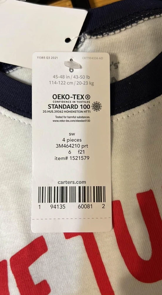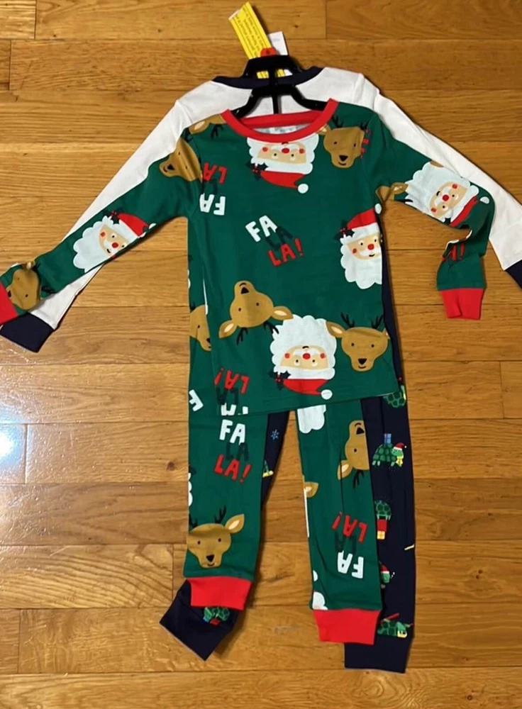 4-piece set Long sleeves Ribbed cuffs & neckline Covered elastic waistband for a comfy fit Fabric & Care: Cotton pjs are not flame resistant. To help keep children safe, cotton pjs should always fit snugly. 100% cotton rib Imported Machine washable