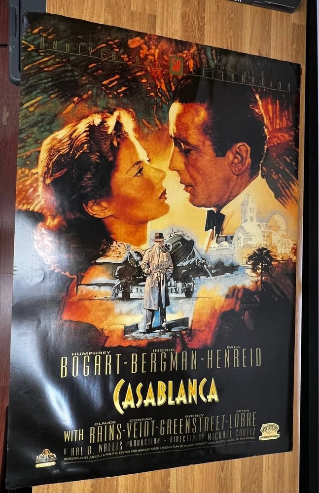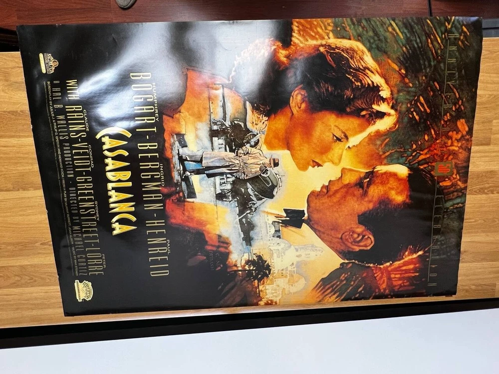 Feel Free to make an offer on any of my items! Vintage Casablanca 50th Anniversary Poster – Featuring iconic artwork of Humphrey Bogart and Ingrid Bergman . A must-have for classic movie collectors and fans of this timeless 1942 film. Measures 27x40 . Great condition, perfect for display! ONE SIDE Good condition The poster is sold without the frame; only the poster itself is included. If you wish to purchase it along with the frame, please feel free to contact us