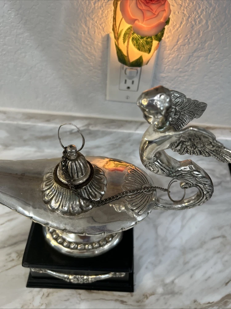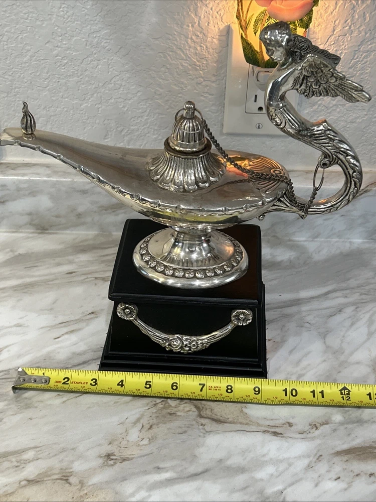 Cast Brass Aladdin Genie Lamp Sculpture. Condition is Used. Shipped with USPS Ground Advantage.