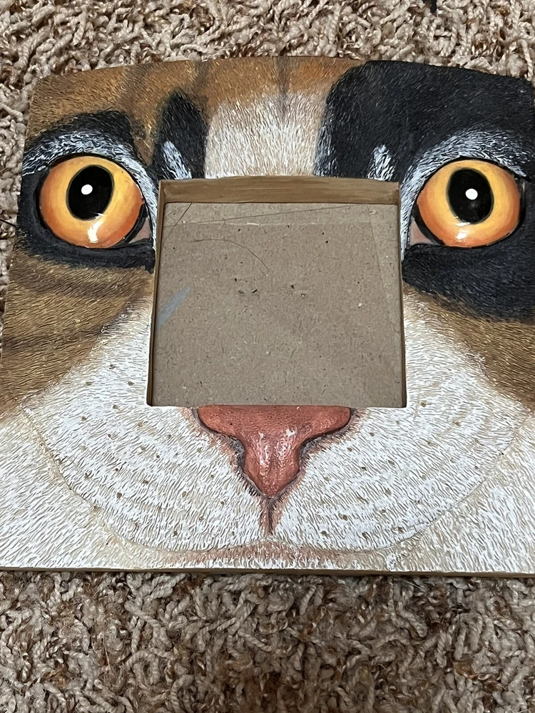 Cat Face Picture Frame Size 3x3 Picture 3D Face Kitty Cat Gold Eyes. Cat Face Picture Frame Size 3x3 Picture 3D Face Cat Gold Eyes. Really cute frame for cat lovers to show off your precious feline!!! No damage noted to frame. All clothing items cleaned per eBay standards