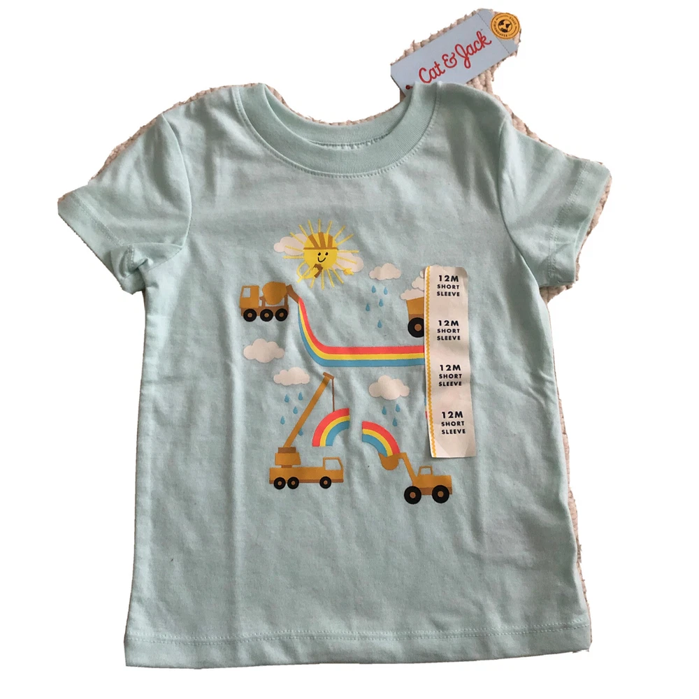 Cat & Jack Kids T-Shirt Rainbow, Trucks, & Sun Size 12M Short Sleeve.