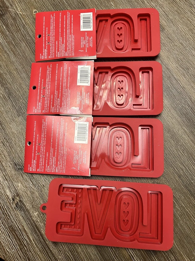 Indulge in the love of Valentine's Day with this set of four Celebrate It silicone candy molds. These molds are perfect for creating delicious chocolate treats in the shape of love, and are sure to impress your loved ones. The molds are made of high-quality silicone material, ensuring that they are durable and long-lasting. With this set, you can create your own celebrity-themed chocolate treats and enjoy the fun of baking and decorating. The molds are compatible with candy and other sweet foods, making them perfect for any occasion. Add these molds to your collection of baking accessories and cake decorating supplies, and celebrate the love of Valentine's Day in style. Lot of 4 3 new with tags and 1 is new out of package