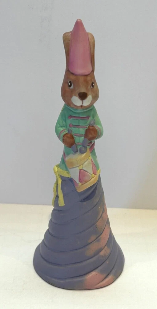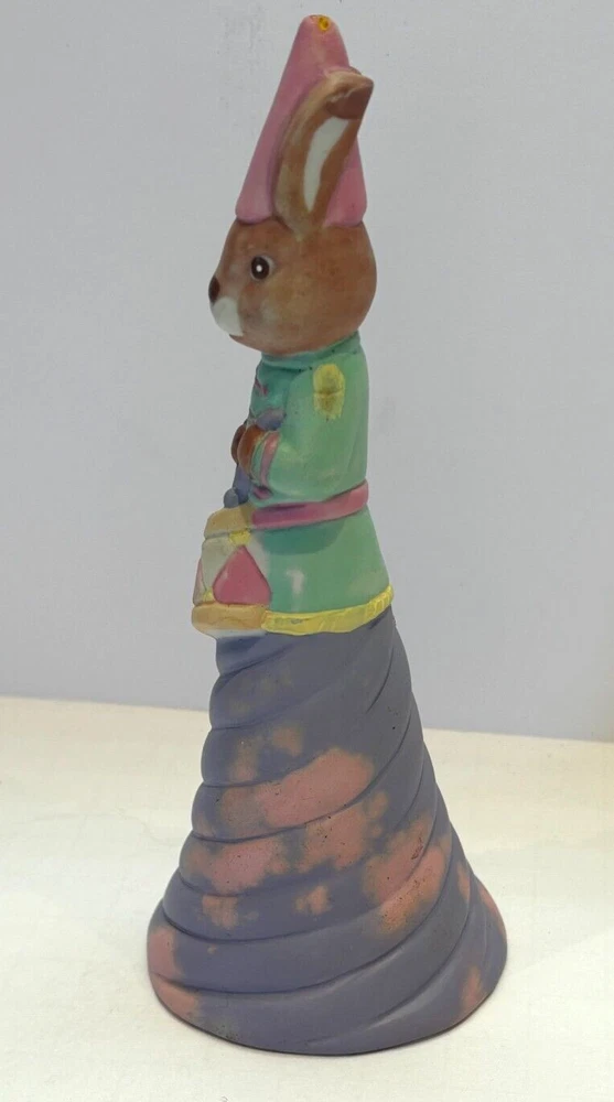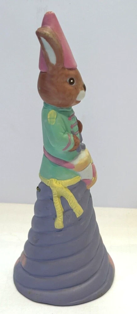 Cute Colorful Bunny Bell drumming that works with Easter theme but can be used anytime. No cracks or breaks! Great addition to your collection! It is 6 1/4" tall and at the base 2 1/2" wide. I process items in 1 day for faster delivery. I will wrap in bubble wrap when shipping. Came from a non smoking home. Please see photos. If you have any questions, please contact me. Thanks!