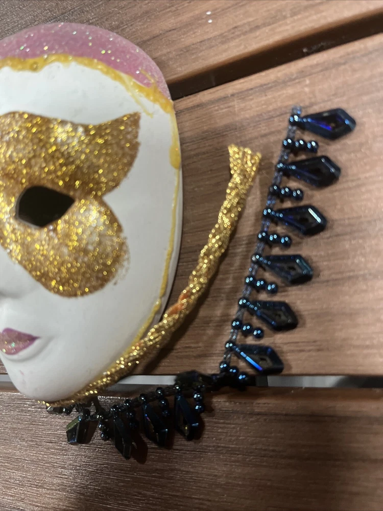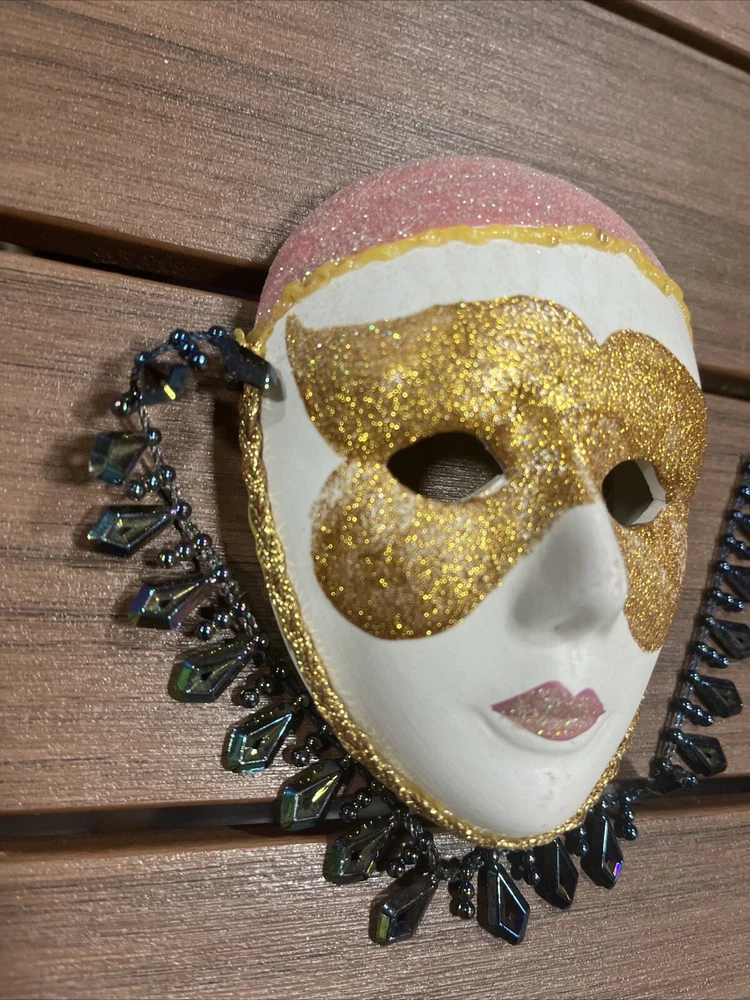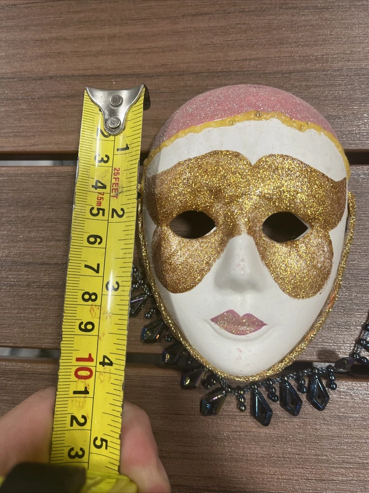 Add a touch of New Orleans flair to your home decor with this ceramic painted Mardi Gras hanging wall mask. The mask features intricate details and vibrant colors, making it a unique and eye-catching piece. Celebrate the spirit of Mardi Gras all year round with this decorative mask that is sure to be a conversation starter. Crafted from high-quality ceramic, this mask is durable and built to last. The painted finish adds a touch of elegance and sophistication, making it a perfect addition to any room. Whether you're looking to add to your collection of decorative accessories or searching for a one-of-a-kind piece to showcase, this Mardi Gras mask is sure to impress.