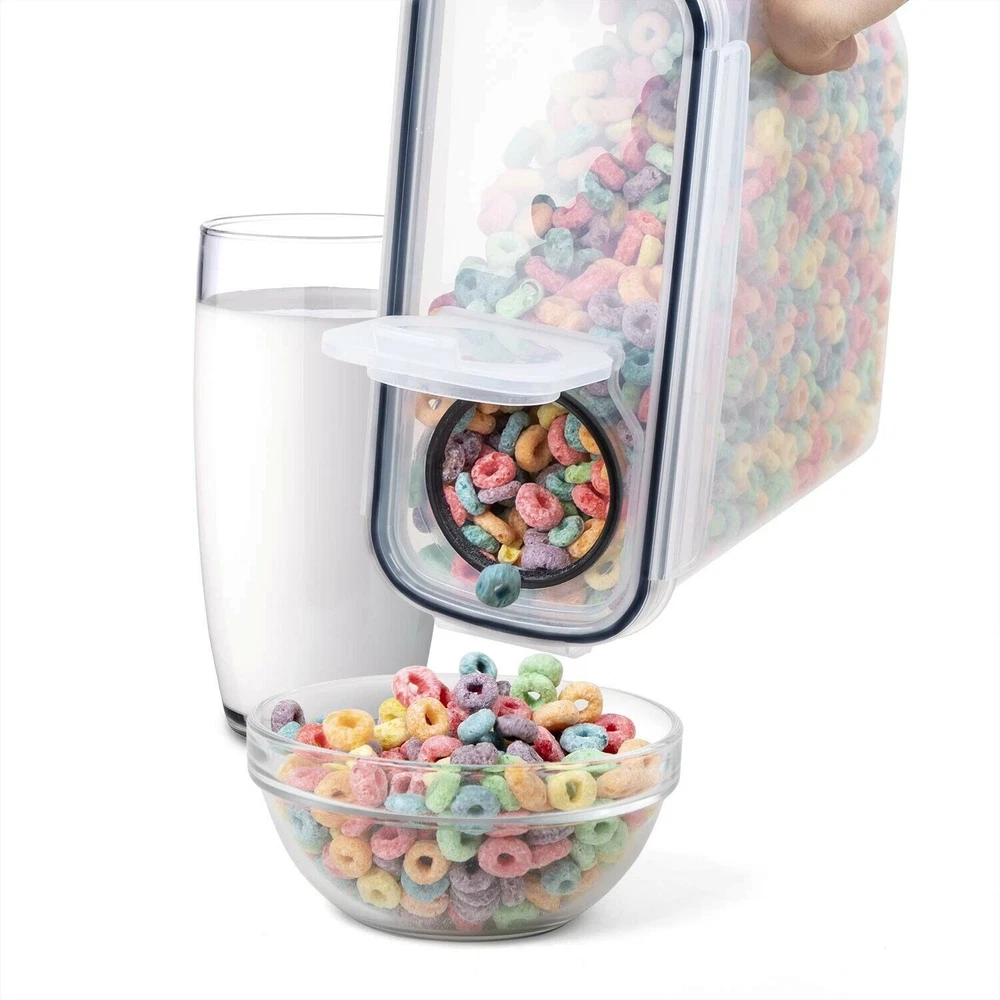 eBay Cereal Containers Storage Set - 4 Piece Airtight Large Dry Food Storage Containers(135.2oz), BPA Free Dispenser Plastic Cereal Storage Containers with 16 Labels & Pen - FOOYOO ✓ Free 60 Day Returns ✓ Free Express Shipping Description: Read more Read more Clearly Visible Gradation Marks: We’ve made it easier to identify internal contents by ensuring our see-through boxes are crystal clear, so you better organize your pantry, freezer, fridge, or personal space. The Package included: 4 × 4L(135.2oz) Cereal Storage Containers 1 Marker 16 Labels Leakproof & Watertight: Four-sided lock plus sealing rubber ring 100% leakproof.With this upgraded sealing system, our food storage containers not only keep your food fresh and dry but also keep those pesky pests out. Read more Keep Food Fresh and Save Space in the Kitchen with Stackable,Reusable Food Storage Containers from FOOYOO. Whether you’re looking for a smart, healthy way to meal prep and stay ahead of your diet plans or you simply want to keep cereal, foods, or snacks more organized until your family is ready to enjoy them, the right containers can make all the difference.That’s why we created FOOYOO BPA Free Cereal Containers that come in plenty of different sizes and styles to help you stay organized and improve the freshness of your favorite foods. 4pcs cereal containers 3pcs cereal containers 6pcs cereal containers 4pcs food storage containers Material Silicone+PP Silicone+PP Silicone+PP Silicone+PP Package Included 4 Large Containers (4L, 135.2oz) 3 Large Containers (4L, 135.2oz) 4 Large Containers (4L, 135.2oz) 4 Large Containers (4L, 135.2oz) 1 Marker 1 Marker 2 Medium Containers (2.5L, 84.5oz) 1 Marker 16 Reusable Labels 16 Reusable Labels 1 Marker 16 Reusable Labels 16 Reusable Labels 1 Measuring Cup BPA Free ✓ ✓ ✓ ✓ Airtight ✓ ✓ ✓ ✓ Dishwasher Safe ✓ ✓ ✓ ✓ Features: PREMIUM PACKAGE: Your complete cereal containers storage set includes 4 premium large cereal storage containers (4L/135.2oz), 16 Free reusable Labels & 1 Marker for your perfect pantry experience. MULTIFUNCTIONAL SPECIALTY: These airtight food containers are not only IDEAL for storing Cereals but they are also PERFECT for storing Flour, Nuts, Sugar, Rice, Snacks, Pasta, Coffee, Tea, Pet food or anything you like. AIRTIGHT & KEEP FRESH: These durable & dishwasher safe airtight containers feat 4 Sided-Locking Lids with Silicone Seal. To ensure that no air or water enters in, keep your cereal dry, safe from moths, ants and other pests, and keep your food fresh longer. POUR THE FOOD OUT EASILY: With a hole in the lid, you can pour the food out easily without opening the lid. To enhance the sealing capabilities of these plastic food storage containers, we add the silicon seal around the flip lid opening. Our airtight containers are designed with comfortable ergonomic grips, you can hold the container effortlessly even its full. SOLID FUNCTIONALITY & SPACE SAVING: Clear plastic makes things easy to check how many cereal or food remain. In addition, Our cereal container has a narrow body which requires less space and will easily fit into your refrigerator, freezer or cupboard, enables you to get the kitchen organized and frees up space in the pantry. Product Details: Product Dimensions: 9.65 x 4.5 x 9.65 inches Item Weight: 3.49 pounds Is Discontinued By Manufacturer: No Date First Available: March 2, 2019
