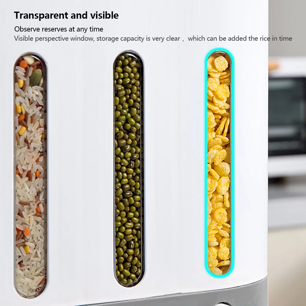 Package Includes 1x Dry Food Dispenser 1x Cup 4x Screws Features: Easy to use: The tank is transparent visual design of the storage dispenser, easy to check the remaining amount at any time. And it is more convenient to take the grain out by pressing the button and put the grain into the tank from the top of the box. Large Capacity: Large capacity can hold all kinds of dry food. Make your kitchen clean and tidy. The large compartments on both sides can hold 2.1kg of grains, and the middle three small compartments can hold 1.6kg of grains each Great Design And Tableware Storage:This Rice Storage Container Also Fit For Cereal, Snacks, Nuts And Baking Supplies. The Airtight Seal Lid Which Ensure To Keep Your Food Dry And Fresh. It Can Make Your Kitchen Neatly Organized. 💖welcome to aaertu~💖 Package Includes 1x Dry Food Dispenser 1x Cup 4x Screws Features: Easy to Use: the Tank Is Transparent Visual Design of the Storage Dispenser, Easy to Check the Remaining Amount at Any Time. and It Is More Convenient to Take the Grain out by Pressing the Button and Put the Grain into the Tank from the Top of the Box. Large Capacity: Large Capacity Can Hold All Kinds of Dry Food. Make Your Kitchen Clean and Tidy. the Large Compartments on Both Sides Can Hold 2.1kg of Grains, and the Middle Three Small Compartments Can Hold 1.6kg of Grains Each Great Design and Tableware Storage:this Rice Storage Container Also Fit for Cereal, Snacks, Nuts and Baking Supplies. the Airtight Seal Lid Which Ensure to Keep Your Food Dry and Fresh. It Can Make Your Kitchen Neatly Organized. You Will Have a Good Mood to Do Cooks Every Day Rice Storage Bin Division: One Type One Switch,Classified Storage of Grain,Separate Buttons for Classification, Without Confusion and Quantitative Feeding.movable Detachable Partition,Free Combination of Grids,the Barrel Body Is Equipped with 5 Partitions, Which Can Be Separated According to Requirements.one Key Press Without Leaving Old Rice. Safe and High Quality: Made of High Quality Food Grade Materials. You Won't Have to Worry About the Health of Your Family. Durable and Shatterproof, We Have Tested the Storage Container Body Ensure It to Be Strong and Durable Enough for Long-lasting Use. Wide Range of Applications: It Has a Wide Application Range, and the Whole Grains in the Kitchen Can Be Placed Freely. with a Visual Scale Window, You Can Observe Reserves in Real-time. Easy to Install: Just Drill Holes in the Wall to Install, Hang on the Wall, save a Lot of Space! You Can Also Place It Directly on the Countertop Suitable for Black Rice, Yellow Rice, Red Beans, Rice, Mung Beans, Soybeans and Other Small Granular Grains. Not Suitable for Oatmeal, Peanut , Large Grain Cereals. Specification: Material: Pp+Ps Total Capacity: 9kg Cup Capacity: 190g Color: Gray-white Size: About 40x15x34cm/15.75x5.91x13.39in Weight: About 1.8kg Reminder:as the Discharge Diameter of the Product Is Only 2cm,Only Suitable for Black Rice, Yellow Rice, Red Beans, Rice, Mung Beans, Soybeans and Other Small Granular Grains. Not Suitable for Oatmeal, Peanut , Large Grain Cereals. Payment Delivery details Terms of sales About us Contact us Payment We accept ebay payment 。 Fees such as import duties, taxes are not included in the item price or shipping costs. These charges are the buyer's responsibility. Delivery details Shipping: 2-9 working days to: USA Terms of sales We maintain high standards of excellence and strive for hundred percent customer satisfaction. Feedback is very important to us. We hope that you contact us immediately before you give neutral or negative feedback, so that we can address your concerns. It is impossible to address issues if we do not know about them! About us Your satis faction is our ultimate goal. We work hard to earn your trust and future business. Our certified technicians have tested each item before shipping. The unit comes with 1 year limited warranty on all manufacturing defects. a) If you receive a defective item, you may return it or ask for a discount. Please contact us within 14 days after you receive the package. b) What you returned must be intact and in its original packaging as re? u. Customer is responsible for shipping costs of the returned item. c) We will cover the cost of shipping back t with the shipping rate indicated in the registration page. We will send you a new unit or refund the full payment you paid. Thank you. Contact us Business Hour Business Hour: Monday To Friday: 8:30 AM to 5:00 PM (Beijing China time) Due to time zones, our reply to your questions may not be immediately. But within above working time, we will reply your email within 24 hours. If it's non-workdays, please kindly be patient and wait till Monday. Please contact us with ebay message. Please feel free to contact us if you have any questions. Monday To Friday: 8:30 AM to 5:00 PM (Beijing China time) Due to time zones, our reply to your questions may not be immediately. But within above working time, we will reply your email within 24 hours. If it's non-workdays, please kindly be patient and wait till Monday. Please contact us with ebay message. Please feel free to contact us if you have any questions.