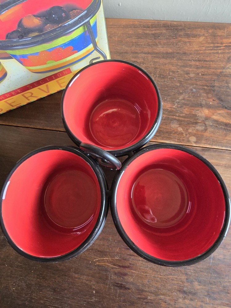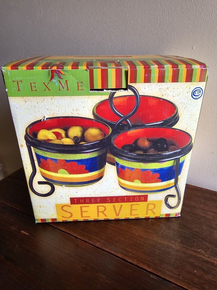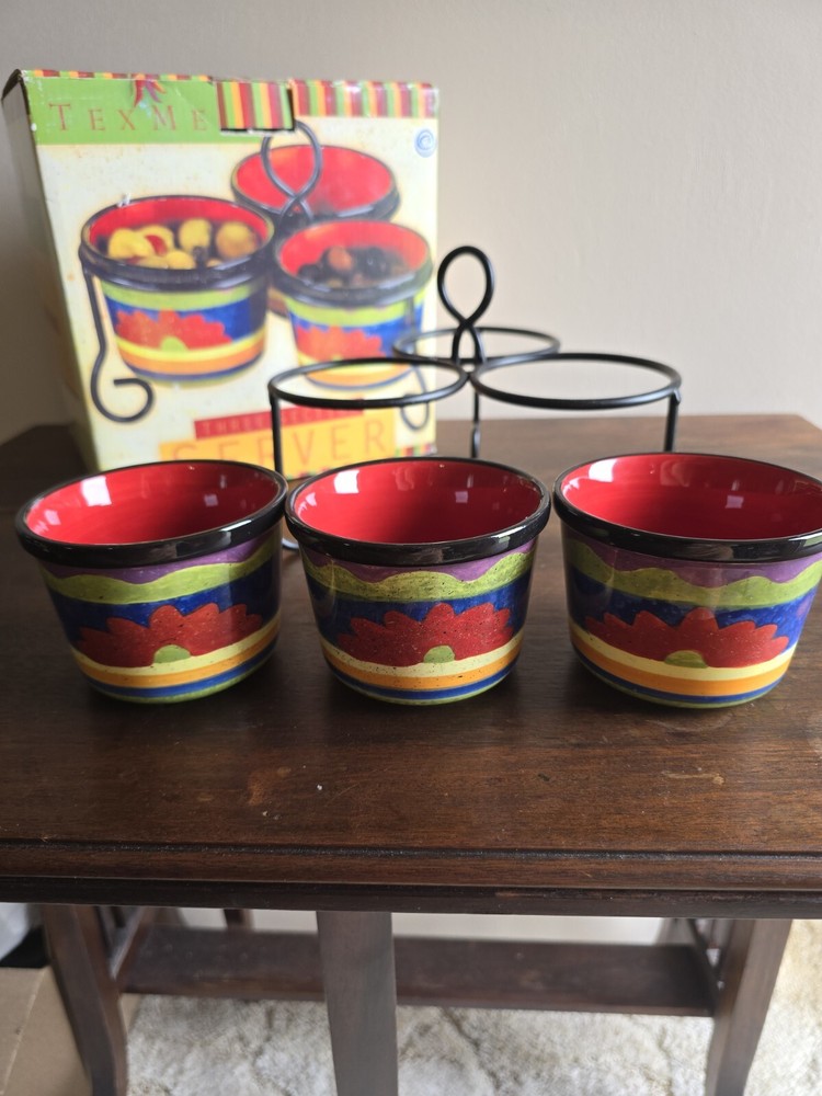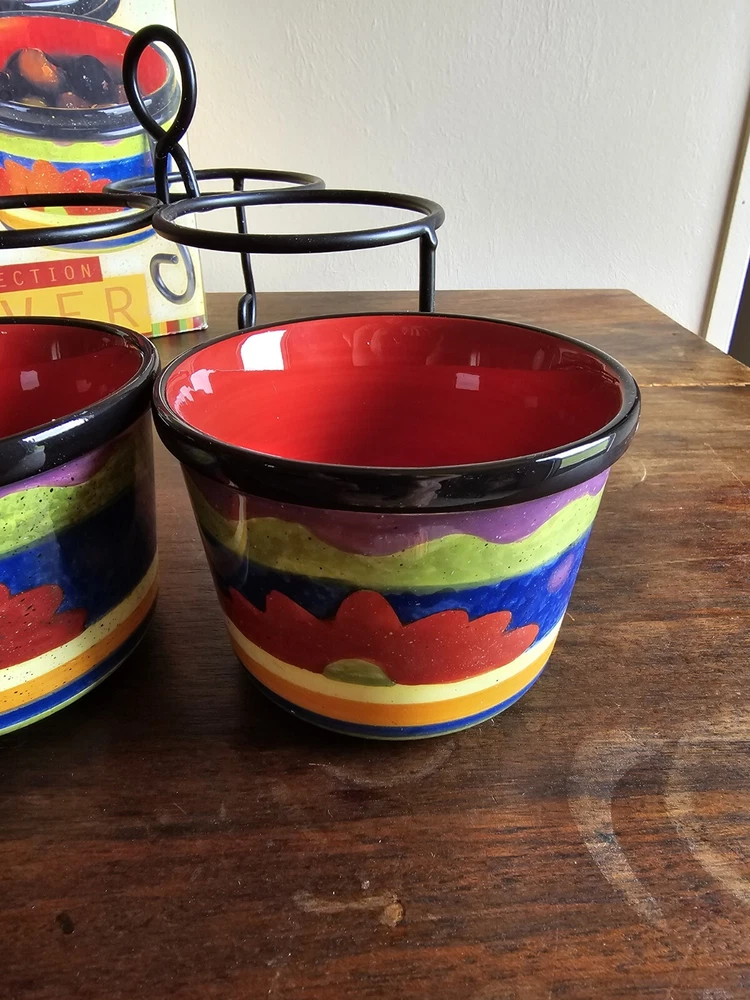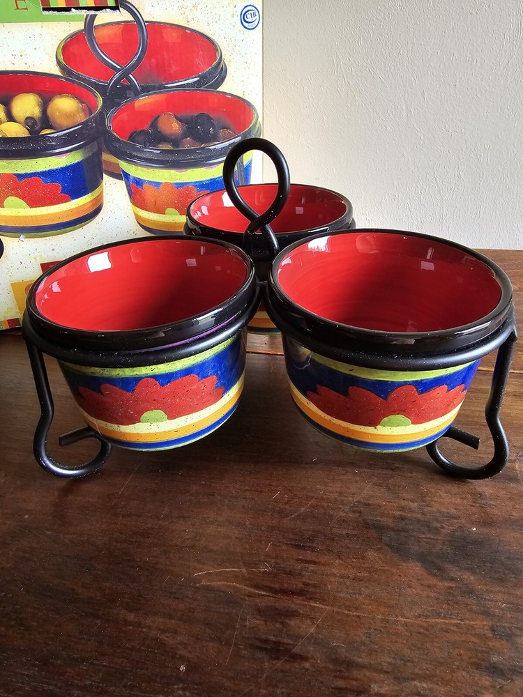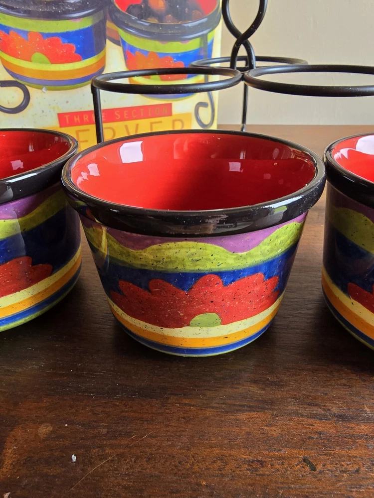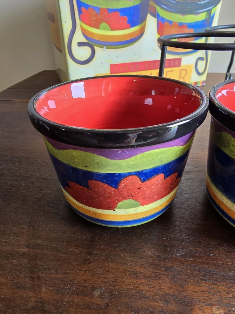 Certified Intl 4pc Texmex Handpainted Ceramic Bowl Section Server Set