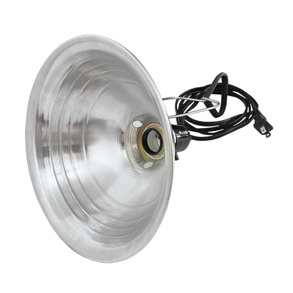 The Champion Electronics Aluminum Clamp Light is designed for halogen, incandescent, and LED bulbs up to 300 watts maximum and includes a protective front guard, making it perfect for use as a heat lamp, brooding fixture, or anywhere higher wattage bulbs are needed. No bulb is included, allowing you to choose the best light for your application. The clamp light has a 10" silver aluminum reflector and is a perfect tool for your garage, barn, workshop, attic, or anywhere portable light is needed. The adjustable base of the steel spring clamp allows the light to rotate 360 degrees making it easy to put the light where you need it most. In addition, the porcelain socket accepts standard medium base bulbs(e12) and includes a 6 foot power cord. A vinyl sleeve covers the clamp surface to secure the light and provide scratch resistance to most surfaces. Do not use in the presence of flammable or combustible material or Hazardous Locations. For Dry Indoor Use Only. 10” Champion Electronics Aluminum Reflector for Use with LED, Halogen, or Incandescent bulbs Porcelain Medium Base Socket for High Wattage and Heat Applications Spring Steel Adjustable Clamp Allows 360 Rotation Vinyl Coated Clamp Surface Designed for Scratch Resistance Base Type: Standard - Medium (E26) 300-Watt Maximum Bulb Rating (not included) Material: Aluminum shield, Steel Clamp Dimensions:10"" x 10" x 12" Cord Length: 6FT Color: Silver Quantity: 1