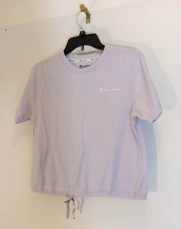 Champion T Shirt Womens Size Medium Lavender Cropped Drawstring Short Sleeve This Champion T-Shirt for women in size medium features a solid lavender color with a cropped style and drawstrings for a unique look. Made with cotton material, it offers a comfortable regular fit with short sleeves and a round neckline. Perfect for casual wear, this classic/fitted sleeve shirt is a stylish addition to any woman's wardrobe. *** Item Specifics *** Brand - Champion Condition - *** Pre-Owned *** Excellent Condition Has Been Soaked, Washed, Cleaned And Disinfected With Lysol Type - T-Shirt Color - Lavender Size - Medium Material - Cotton Style - Traditional Gender - Women Pattern - Solid Care - Machine Washable Made In - Indonesia Vintage - No Chest - 18" Inch Length - 19" Inch Sleeves - 7" Inch