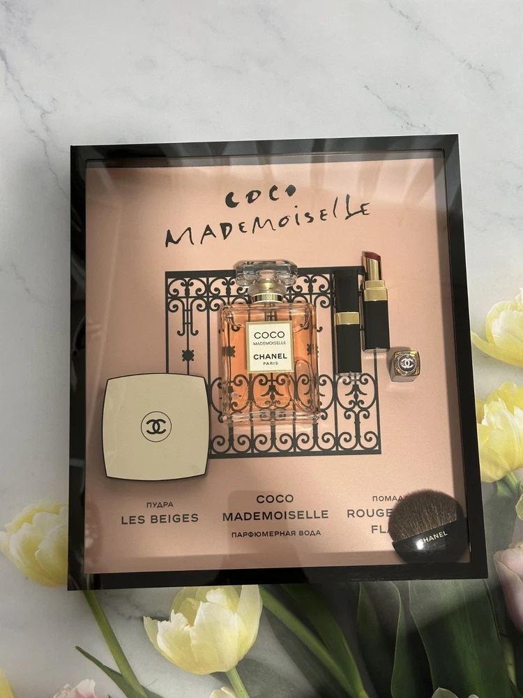🌸 Rare Limited Edition Chanel Coco Mademoiselle Store Display Set — Powder, Perfume & Lipstick 🌸 Bring a touch of Parisian elegance to your space with this limited edition Chanel Coco Mademoiselle store display set , featuring a beautiful arrangement of powder, perfume, and lipstick in a vibrant multicolor palette. Made in France, this exclusive visual merchandising piece was originally created for Chanel boutiques and is now a highly sought-after collectible. The display showcases the iconic Coco Mademoiselle aesthetic — feminine, modern, and effortlessly chic. With its striking colors and exquisite packaging, it instantly elevates any vanity, boutique, showroom, or Chanel collection. Perfect for: • Chanel collectors • Luxury beauty displays • Home décor and vanity styling • Photography props • Gift for Chanel lovers This limited edition set is no longer produced, making it a rare find for enthusiasts of the legendary brand. Its craftsmanship, eye-catching design, and high-end presentation make it a standout piece for any Chanel fan. Indulge in a true piece of Chanel artistry. ✨ Size: 30 cm x 27 cm x 4 cm ( 11.8 in x 10.6 in x 1.6 in)