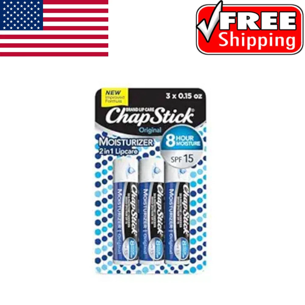 {Title} {Storehook1} ChapStick Moisturizer Original Lip Balm Tubes, Item Description ChapStick Moisturizer Original Lip Balm Tubes, SPF 15, are the perfect solution for keeping your lips hydrated, protected, and comfortable throughout the day. This pack contains **three 0.15-ounce tubes**, each providing **SPF 15** sun protection, making them an essential addition to your skincare routine. The formula is designed to protect your lips from harmful UV rays while delivering long-lasting moisture. Whether you're out for a walk, at the beach, or simply running errands, ChapStick provides the hydration your lips need, with protection that lasts up to **eight hours**. The **Original ChapStick Moisturizer** is an **unflavored and unscented** balm, perfect for those who prefer a simple, familiar lip care experience without added fragrances. The smooth, **gel-like texture** glides on easily, providing immediate relief to dry, cracked lips. Packed with **aloe** and **vitamin E**, it not only moisturizes but also helps to nourish and soothe lips, leaving them feeling soft and smooth. Designed for convenience, the ChapStick tubes are compact and easy to carry in your **pocket**, **purse**, or **drawer**, so you can apply it whenever your lips need a little extra care. The formula is **paraben-free**, **non-tinted**, and gentle on your skin, making it suitable for all skin types, particularly those with dry lips. With the **ChapStick Moisturizer Original Lip Balm** pack, you get a **three-count** supply, ensuring you're always stocked up and ready to protect your lips from sun exposure and harsh weather. Whether at home or on the go, ChapStick makes it easy to maintain healthy, smooth, and protected lips all year round. Payment ALL METHODS ACCEPTED BY EBAY Shipping within 6 days of payment maximum usually we ship and deliver within 3 days. Return 30 day return policy Feedback Copyright , {storeHook1} | All rights reserved.