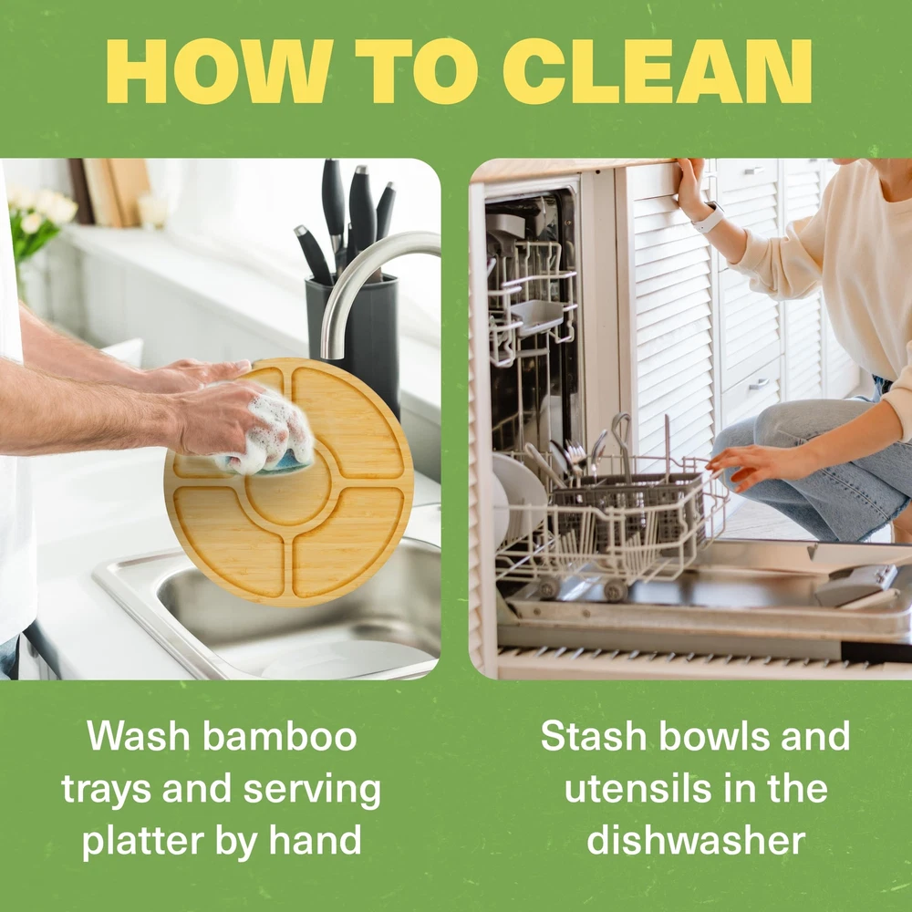 Complete Set: Includes a cheese tray platter with 4 stainless steel utensils, 3 ceramic bowls, a detachable serving tray, and 2 hidden drawers for organized storage and serving Premium Bamboo: Crafted from 100% bamboo, this bamboo cheese serving tray is durable, easy to clean, and suitable for hosting events, offering an eco-conscious, luxurious wood finish Ideal for Entertaining: This charcuterie board set features a grooved rim for crackers and bread, providing ample space for cheeses, meats, fruits, and more to impress your guests Hidden Utensil Storage: Designed with hidden drawers to store utensils neatly, the cheese board with drawers ensures easy access to tools while maintaining an elegant look Ideal Gift Choice: A thoughtful gift for housewarmings, weddings, or anniversaries, this charcuterie boards with hidden utensil drawer complements any kitchen with its stylish design