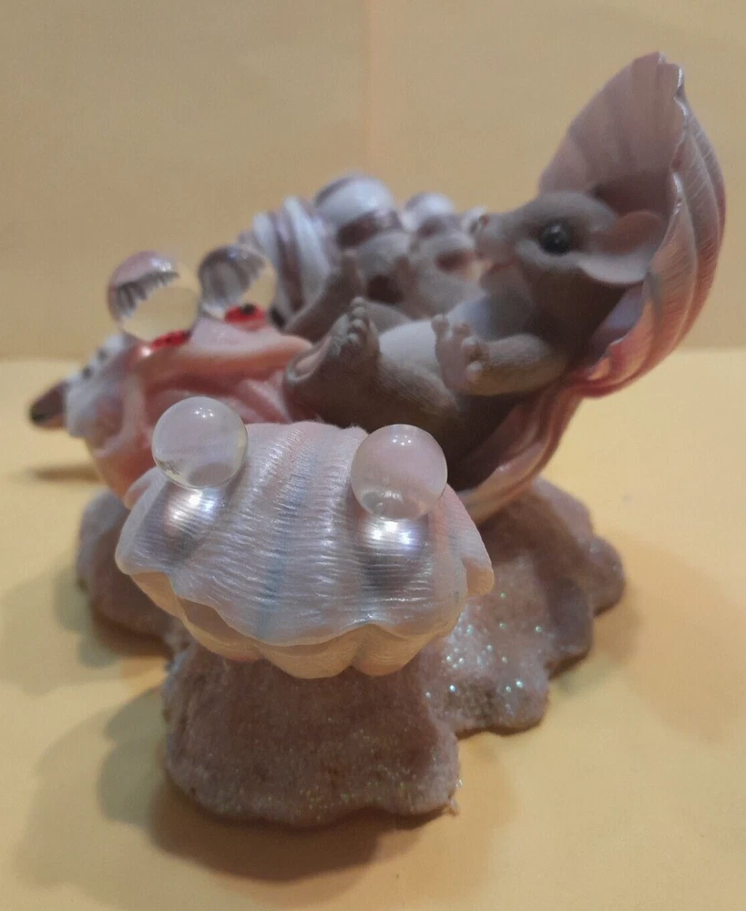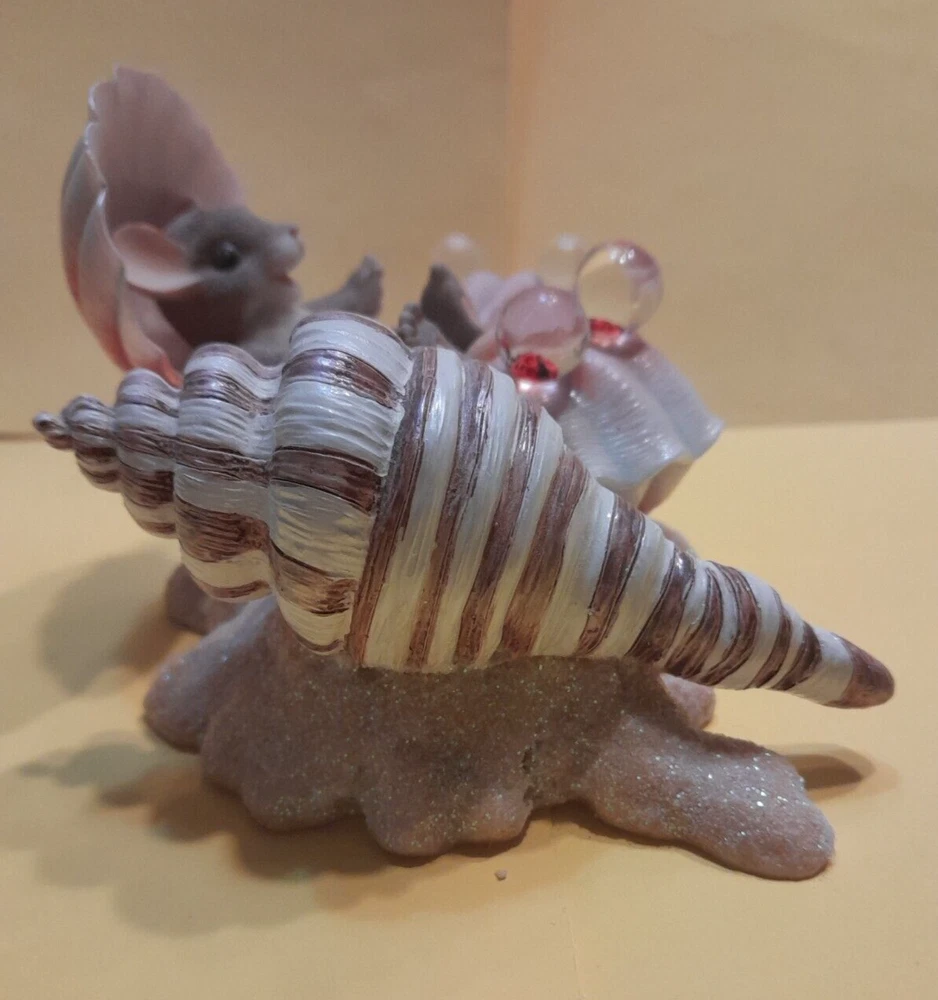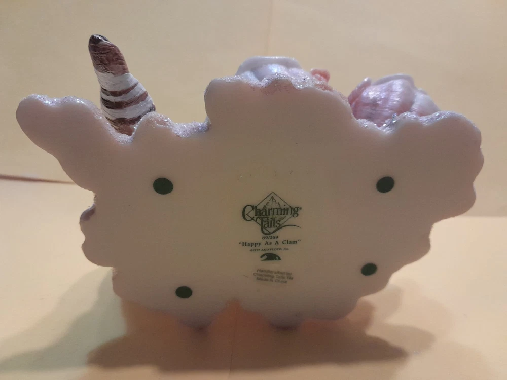 Charming Tails, Happy as a Clam. Mint condition. Mouse at the beach, playing in pretty shells, with two ladybug friends.. Fitz and Floyd. CN: 89/269