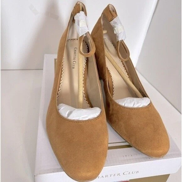 Details Slim ankle-strapping accents the trim silhouette of Charter Club's Francina pumps to add a delicate dimension to handsome tailoring. 2-3/4" block heel Almond-toe pumps with adjustable buckle at ankle-strap Upper: suede; lining: polyurethane; sole: man-made Spot clean Imported Listing and template services provided by inkFrog