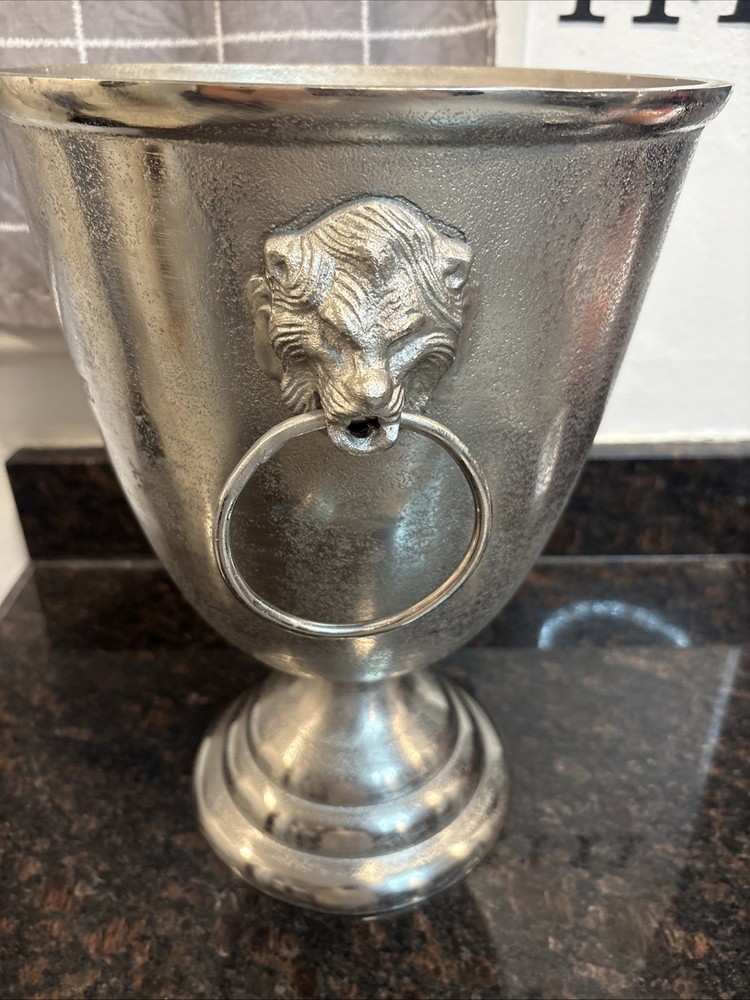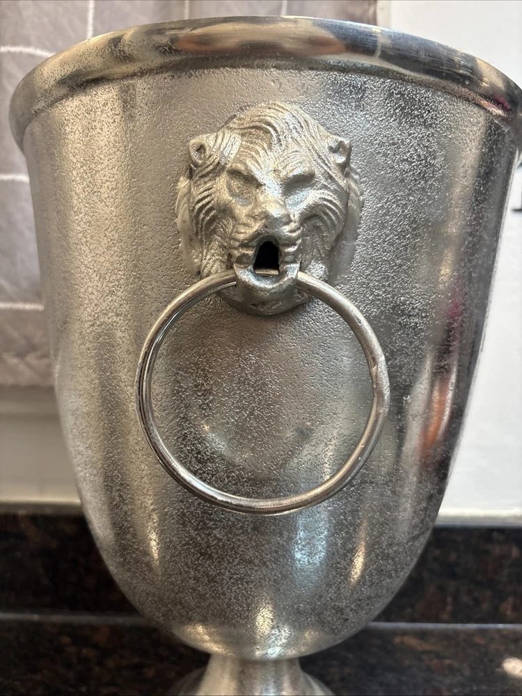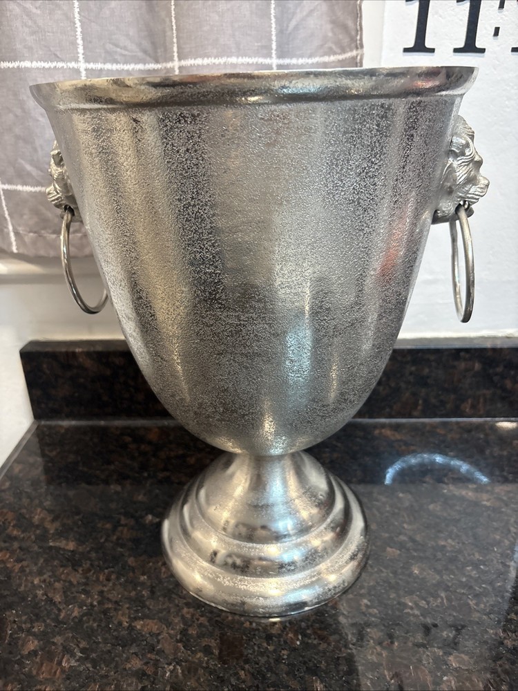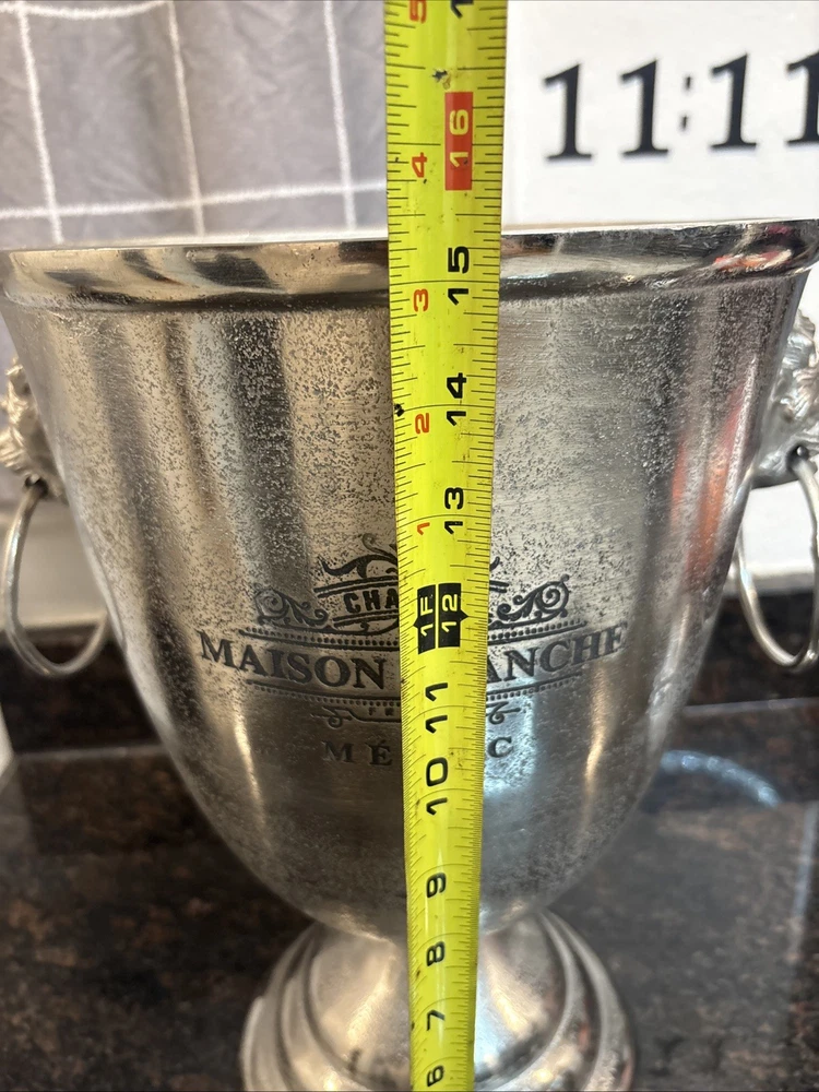 The Chateau Maison Blanche Extra Large Ice Bucket Champagne Holder is a stylish and practical addition to any barware collection. Made from silver metal, this ice bucket stands at a towering 15.5” tall and 11” wide, making it perfect for holding large quantities of ice for keeping drinks cool. With a sleek design and sturdy construction, this ice bucket is both functional and elegant, weighing in at 6 pounds and 2 ounces. Perfect for entertaining guests or everyday use, this extra large ice bucket is a must-have for anyone who appreciates quality and sophistication in their kitchen or barware collection.