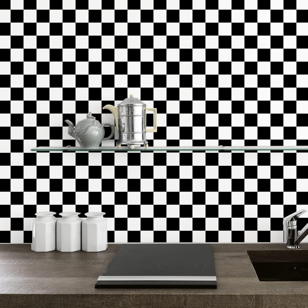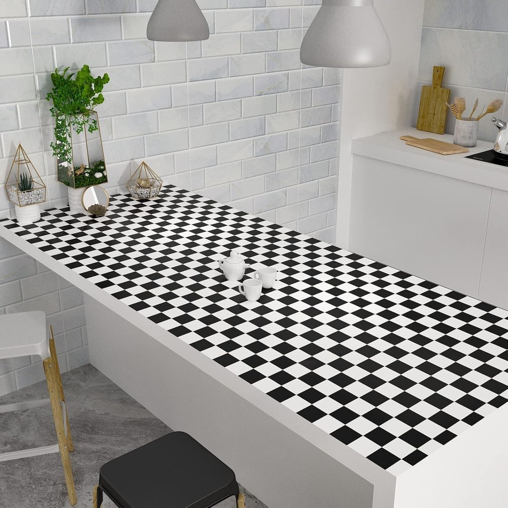 About this item Checkered Contact Paper🏁 Size & Pattern: 354"L x 32"W, total coverage in 78.46 square feet, large size opt for seamless area. Black and white checkered pattern, matte finish, thick vinyl, durable, does not tear and crease easily. Black and White Wallpaper🏁 Feature: Removable wallpaper, waterproof and oil-proof, easy to clean, wear resistance, strong adhesive, repositionable for fixing mistakes, no sticky adhesive left behind, safe for walls. Black and White Wallpaper🏁 Easy to install: Checkered wallpaper is self-adhesive, there are grid lines on the backing for precise cuts, simply peel and stick this contact paper on the surface, quick way to create a classic and modern checkered look to your space. Checkered Wallpaper🏁 Application: Black and white checkered wallpaper, suitable for kitchen cabinets, countertops, backsplash, shelf liners, drawer, locker, dresser, TV background, DIY crafts projects, nightstand, door, accent wall, backdrops, furniture, dorm, bedroom, living room, office decor, pantry areas, closet, or any smooth and flat surface. Checkered Wallpaper🏁 Tips: For best adhesive and aesthetic result, please use on a flat, dry, smooth surface; textured and rough surfaces are not recommended. Buy enough rolls at once to ensure they come from the same batch to avoid different colors. Size: 354"L x 32"W.