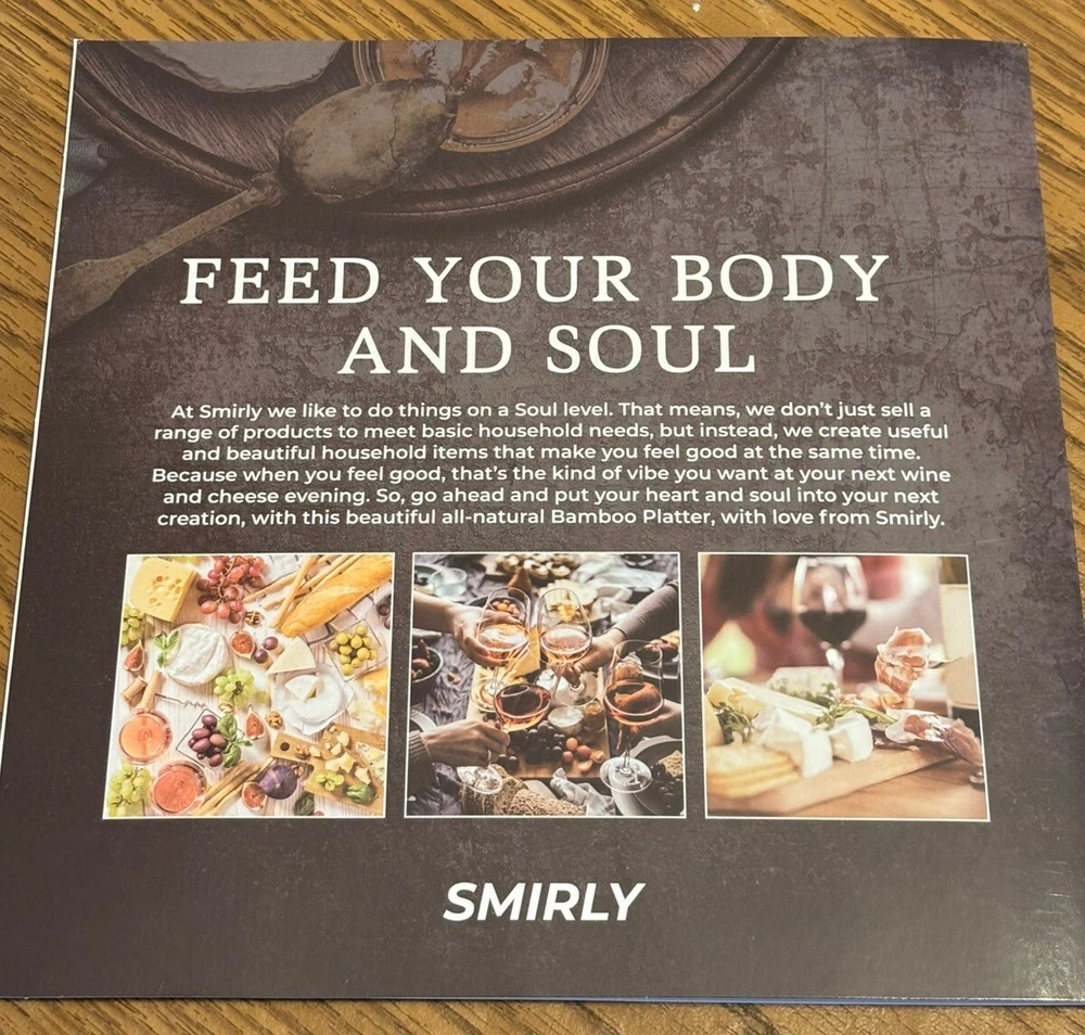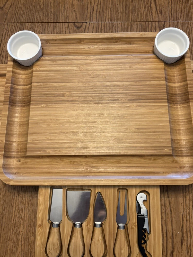Great for holiday parties and gathering. High quality and sturdy. If you’re going to put out some fancy meats and cheeses for your guests why not have something beautiful to present them. This charming SMIRLY Cheese Board and Knife Set is a must-have for every cheese lover. The set includes a medium-sized bamboo cheese board and a matching knife, perfect for effortlessly slicing through your favorite cheeses. The set is not only functional but also stylish, making it an ideal addition to any kitchen or dining room. Crafted from high-quality bamboo, this cheese board set is durable and long-lasting. The set is perfect for entertaining guests or simply enjoying a small snack of cheese. With its elegant design and sturdy construction, this cheese board set is sure to become a favorite in your home.