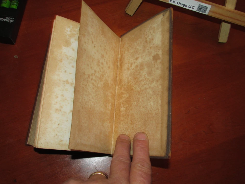 HEAVY FOXING TO ENDPAPERS/PASTEDOWNS, NOT SO MUCH INTERIOR. TIGHT WITH ATTACHED BOARDS, LEATHER. THANKS! -RKM