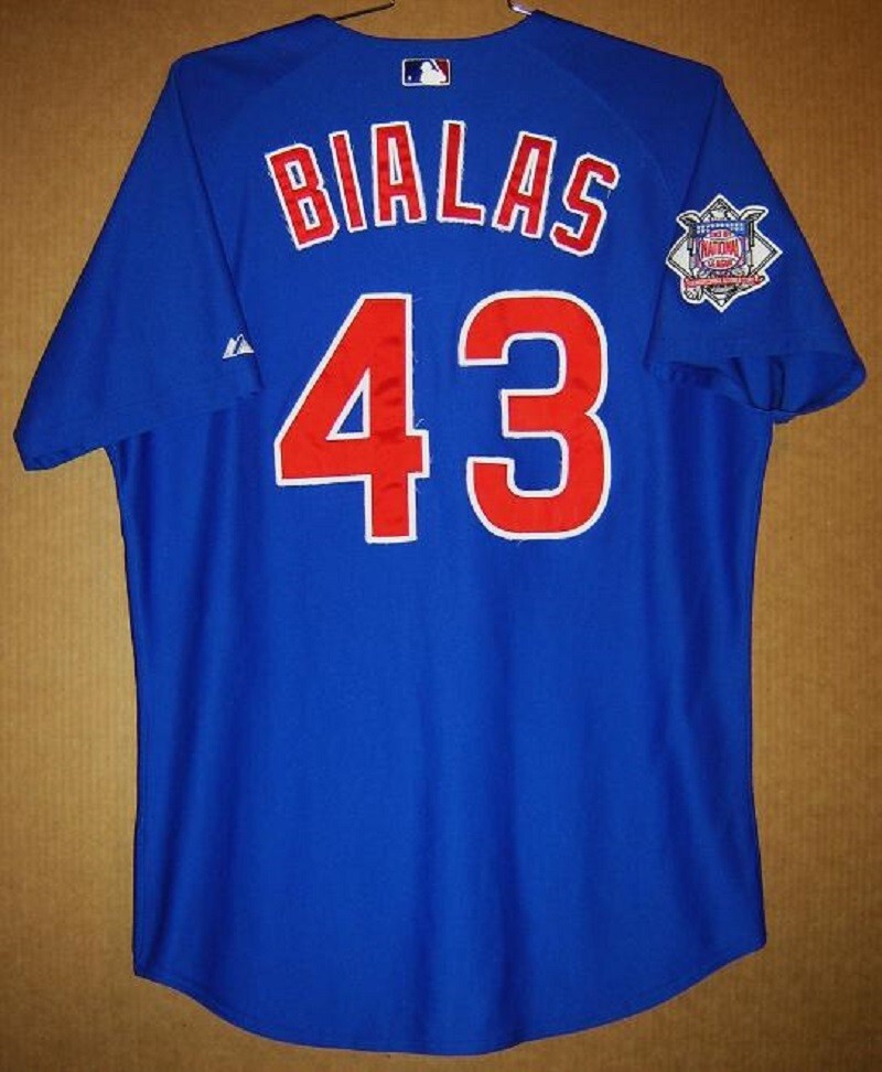This is a Dave Bialas blue button-down Chicago Cubs jersey. He served as a coach for the Chicago Cubs from 1995 through 1999 and in 2002. Inside the jersey is a Majestic wash tag with their code 0062 on it which indicates it is a Majestic full weight knit team issued game jersey. This was used in their game jerseys starting in 2003 and newer. It is a size 48 jersey by Majestic and it is in good condition. <<<<<<<<<< OFFERS NOT CONSIDERED >>>>>>>>>> I have been dealing directly with many professional and college sports teams for the past 40 years and you can buy with confidence! Buyer to pay $12.00 for shipping. Check out my feedback and buy with confidence. Please visit our eBay Store for jerseys, equipment and memorabilia from many different sports, teams and events. Thank you!