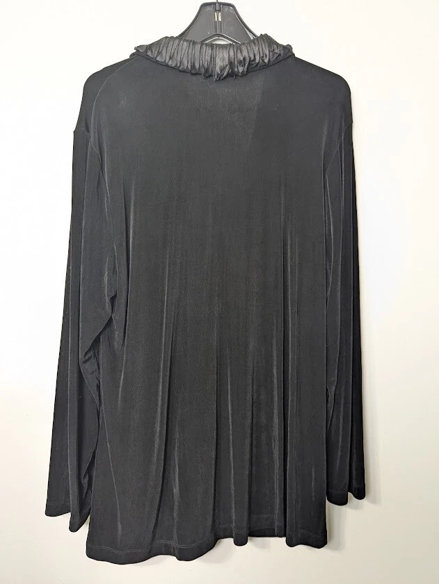 Chicos Traveler Cardigan Womens Black Slinky Knit Long Sleeve Sparkly Clasp sz 3 (Large) Holiday - Wedding - New Year's Measures approximately 24.5" armpit to armpit (see photo for all measurements) 95% Acetate 5% Spandex Good Condition