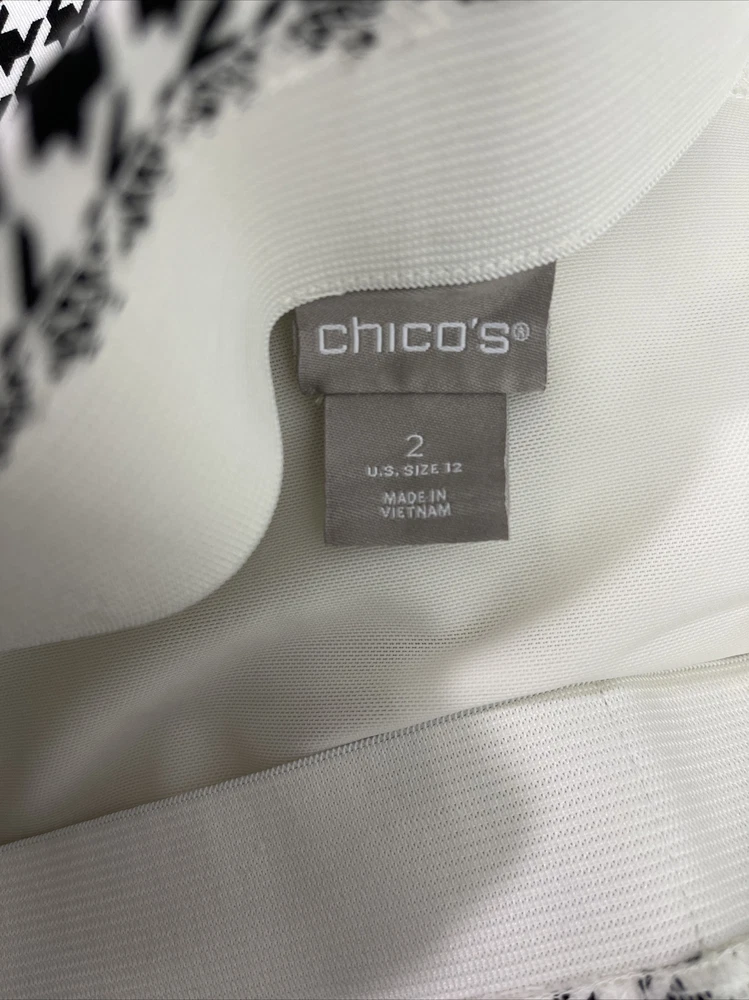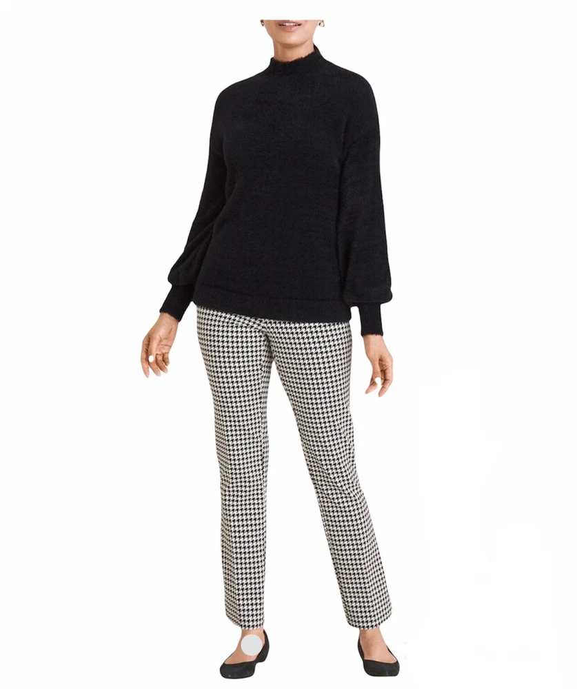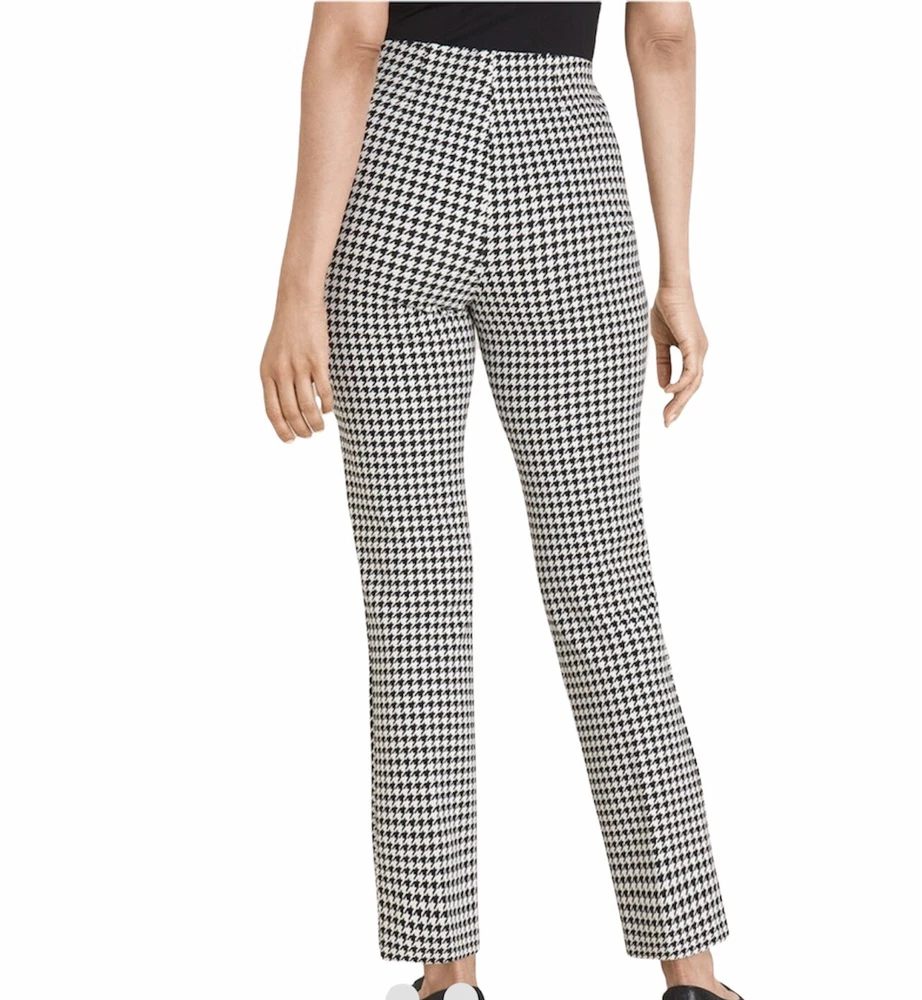Chicos Women’s Size 12 Elastic Waist Juliet Houndstooth Ankle Pants. Product Details Juliet ankle pants now have the So Slimming technology you love—and it's better than ever, with a new and improved front panel that has even more comfort and stretch, and better tummy control. (That's what we call a fashion victory.) There's nowhere these fitted, slim-leg pants can't go, with a sleek pull-on silhouette that eases over every contour in a classic houndstooth check print. The Fabric: Ponte fabric powered by exclusive So Slimming® Hidden Fit technology that slims and smooths at the tummy. Waist 36” Inseam 26” Measurements taken laying flat New without tag Smoke free pet free home