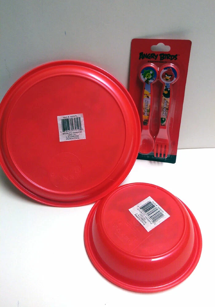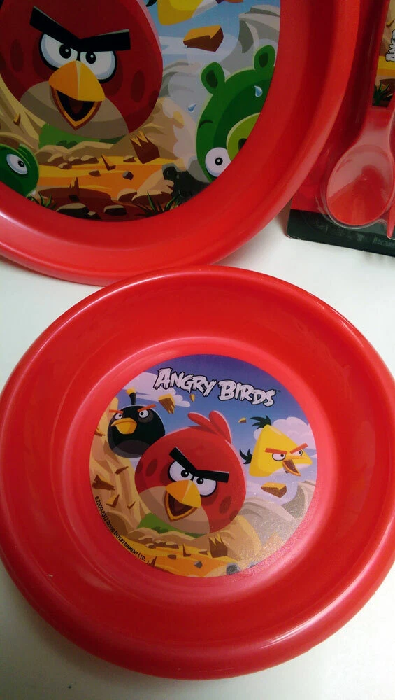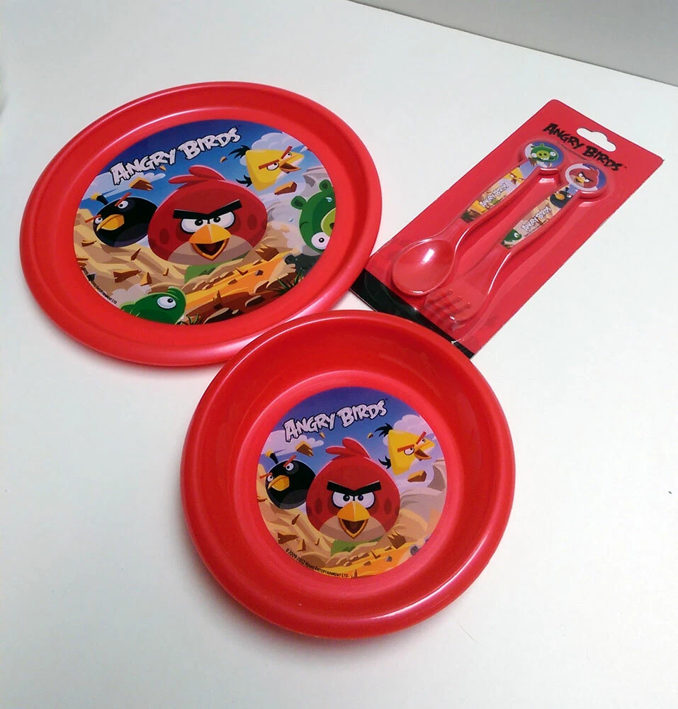BRAND NEW Angry Birds 4 Piece Dinnerware Set Key Features: This is for a brand new Angry Birds dinnerware set which includes: ONE Dinner Plate (9 inch diameter) ONE Bowl (6 7/8 inch diameter) ONE Angry Birds Spoon & Fork Set Officially licensed merchandise This Product is: Brand New Item # ABBWL VISIT OUR EBAY STORE FOR MORE ITEMS