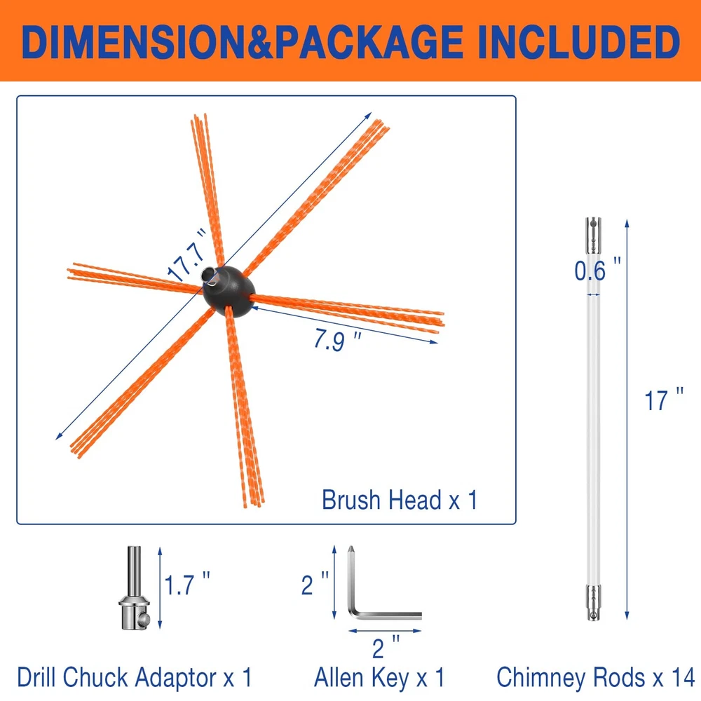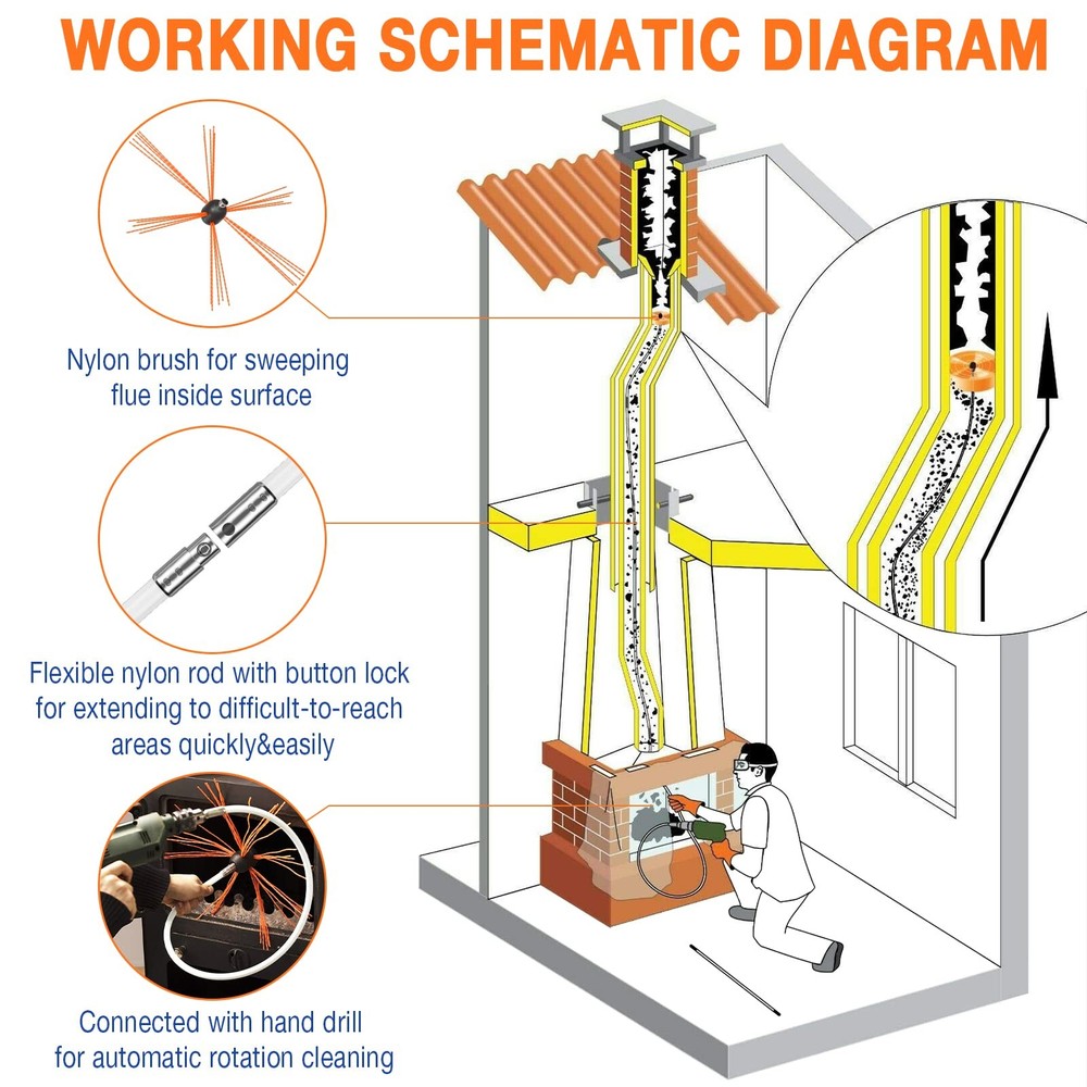 Chimney Sweep Kit 20 Ft Flexible Nylon Rods 14 Rods Fireplace Cleaning 【PREMIUM NYLON MATERIAL】The chimney sweep rods are made of durable nylon material which is strong and elastic enough to fits any height of your flue. The chimney brush head is made of strong nylon string with special sharp edged rectangular shape which has 17.7" sweeping diameter to make the sweep more efficiency. 【PACKAGE INCLUDED&DIMENSION】By purchasing our chimney cleaner set, you will get 14 chimney rods in 0.6" diameter 17" L and assembled extending length to be 20FT, 1 brush head with 17.7" rotary sweeping diameter, 1 generic drill chuck adaptor and 1 allen key. 【WIDELY APPLICATION】This chimney cleaning tool can effectively sweep away soot and creosote buildup inside the chimney or on the roof to help prevent flue fires. The chimney brush is suitable for flues of various shapes and sizes. It can clean other difficult-to-reach areas quickly&easily. When the chimney is cleaned, the air enters the chimney more smoothly which can help burn more completely in the fireplace and make the room warmer in winter. It can also help you save the professional service costs of the chimney cleaning. 【PROFESSIONAL CHIMNEY CLEANING KIT】Please notice that we are providing professional chimney sweep tool which is totally different from dryer vent cleaning kit. The each rod width should be at least 0.6" which is much more wide than dryer vent sweep rods and the brush head should be at least 17.7" sweeping diameter to clean flue effectively. 【BEST USAGE GUIDE SERVICE】We promise to get you covered for any issues that might occur and providing you unconditional return. 24 hours online customer service to provide you guidance on the any using problem of the chimney cleaning kit. Why -Professional department for product R&D which committed to improve product function and user experience continuously based on marketplace demand and customers' feedback. -Integration of production and sales which provide customers with the most cost-effective products. -Promptly deal with any problems for customer with 24-hour online customer service center. Security&Warnings Engaging in using your chimney brush, safety should be your top priority while using this product and improper use could result damage to the chimney brush. - Use professional drills for power sweeping that have safety auxiliary handle that will stop the drill immediately when necessary. - Use drills with a speed range from 350rpm to 2000rpm. 24v or above DC powered drill, or 500W and above AC powered drill. Shipping We offer FREE shipping on all orders! We ship within Three business days of payment, usually sooner. We use a selection of shipping services such as UPS, FedEx, USPS etc. We only ship to the lower 48 states, no APO/FPO addresses or PO Boxes allowed. Local pickups and combined shipping options are not provided at this time. Return You can return a product for up to 30 days from the date you purchased it. Any product you return must be in the same condition you received it and in the original packaging. Please keep the receipt. Payment We accept payment by any of the following methods: PayPal Please pay as soon as possible after winning an auction, as that will allow us to post your item to you sooner! Feedback Customer satisfaction is very important to us. If you have any problem with your order, please contact us and we will do our best to make you satisfied. Contact Us If you have any queries, please contact us via ebay. We usually respond within 24 hours on weekdays. Please visit our eBay store to check out other items for sale! Thank you for shopping at our store.