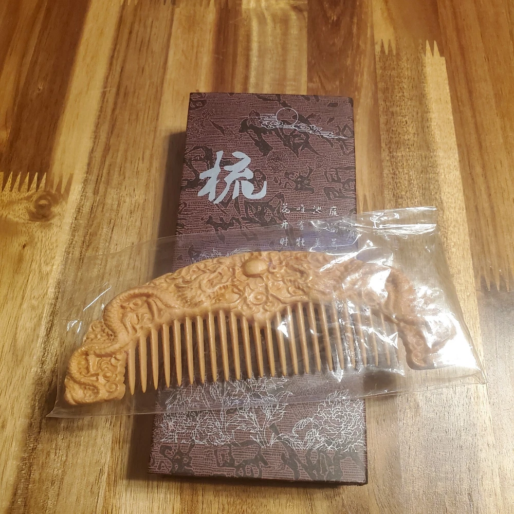 Add a touch of elegance to your hair routine with this beautiful China Natural Thuja Wood Comb! This double-sided carved Dragon Image comb is perfect for everyday use and will suit both men and women. Crafted from the finest quality Wood, this comb is made to last and will stay in great condition for years to come. The intricate Dragon design is a true work of art and will make a great addition to any collection. Made in China, this comb is a must-have for anyone who appreciates quality and craftsmanship. Box 3