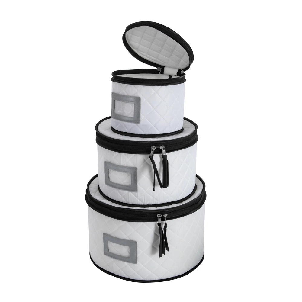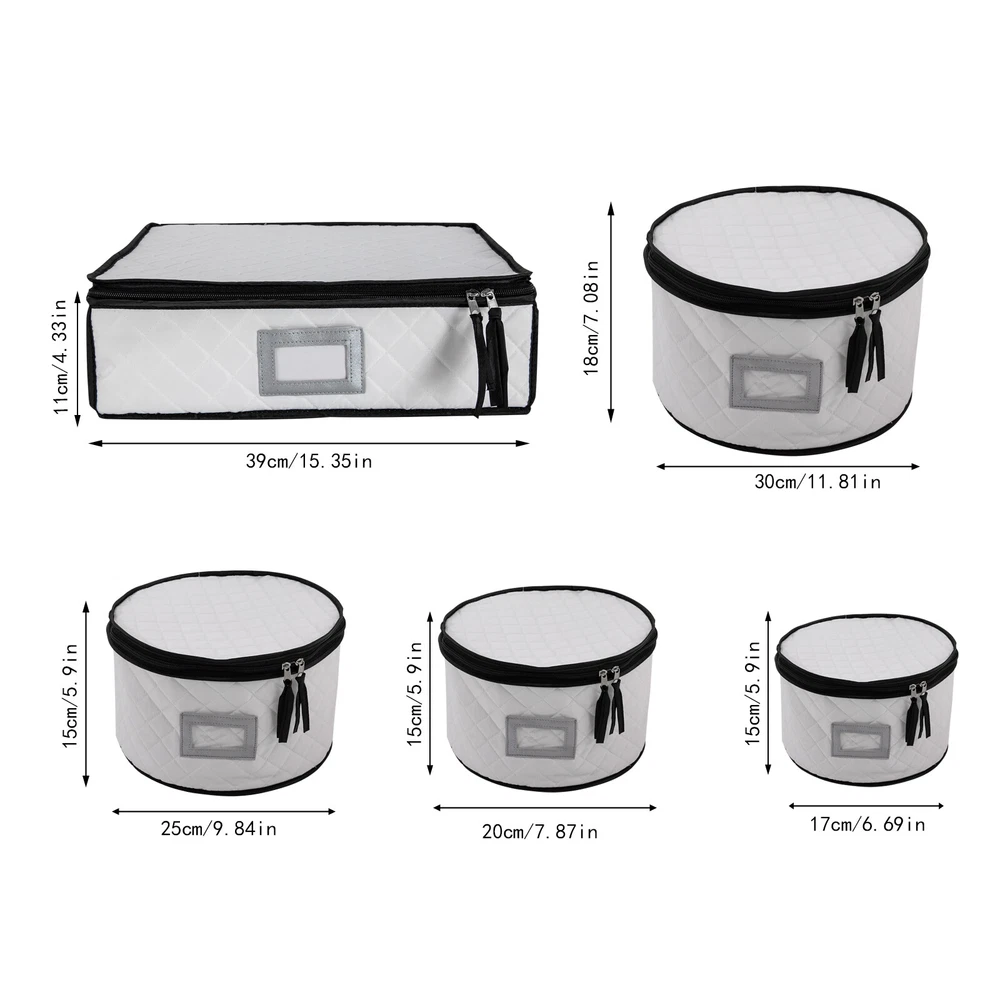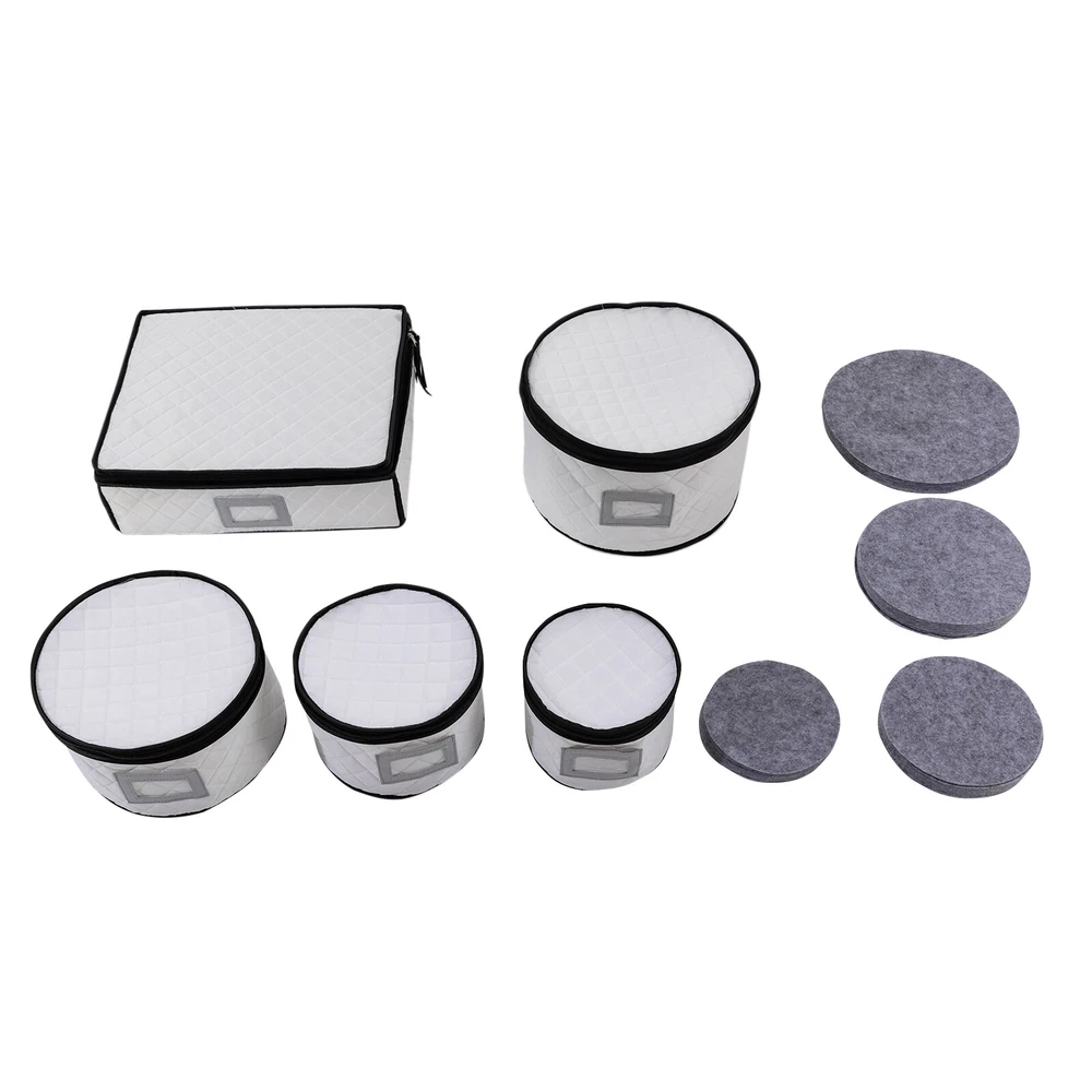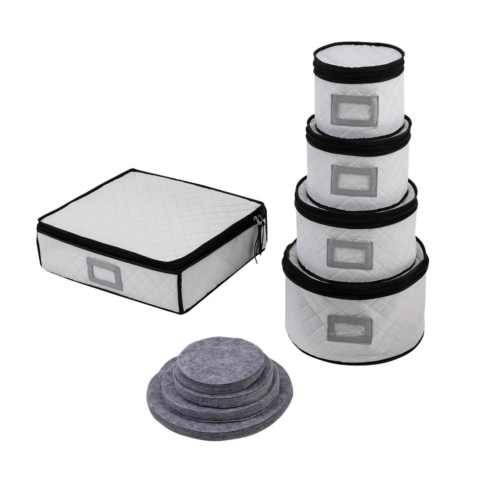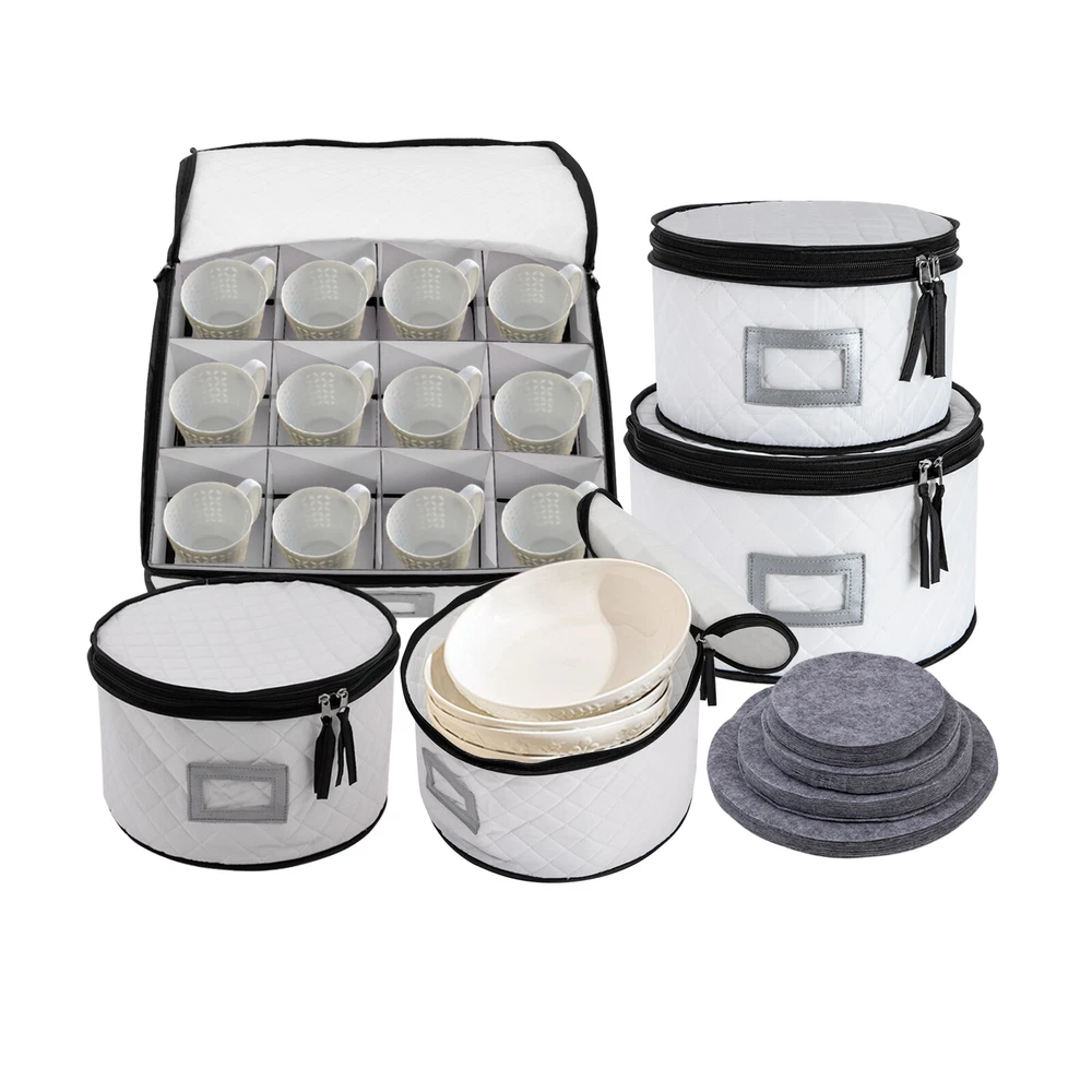 Specifications Color: Creamy White Style: Modern Shape: Round, Rectangular Material: Polyester, Sponge, Felt Fabric, Paperboard Assembly Required: No Closure Type: Zipper Number of Items: 5 Number of Compartments of the Large Organizer: 5 Four Round Organizer Size(D*H): 30*18cm/11.81*7.08inch, 25*15cm/9.84*5.9inch, 20*15cm/7.87*5.9inch, 17*15cm/6.69*5.9inch Large Rectangular Organizer(L*H): 39*11cm/15.35*4.33inch Packaging Size: 33.5*13*38cm/13.19*5.12*14.96inch Gross Weight: 2kg/4.41lbs Package Included 5* Dinnerware Storage Organizers 4Set* Plate Mats China Storage Containers with Lid , Dinnerware Storage Box for Dishes & Plates Description Are your dishes, cups, and saucers always misplaced, taking up space, or breaking by accident? You need to get yourself this dinnerware storage organizer set. It includes five organizers made of soft and elastic material and boasts a large capacity for storing and protecting your plates and cups from scratch and cracking, helping you manage your dishes effectively, and making your table and kitchen more tidy. Whether you are a housewife or a professional cooker, it is a good and indispensable helper for you. Key Features π₯ High-quality Material: It is mainly made of high-quality polyester, sponge, and paperboard with excellent wear resistance and durability, making our products the ideal protector and organizer for your plates. π₯ Kitchen Organizer: This set includes five different sizes of organizers for storing and organizing plates, cups, saucers, and other kitchenware, saving you kitchen space and meeting your daily categorized storage needs. π₯ Tableware Protector: With a soft sponge inside and polyester outside, it can protect your fragile plates, dishes, and cutlery from scratches or cracks, ensuring they remain clean, dust-free , and intact to a certain extent. π₯ Large Capacity: The four round organizers with different sizes can accommodate saucer plates, dessert plates, salad plates, dinner plates, etc., while the large rectangular one with 12 compartments can store your cups safely and orderly. Additionally, the removable partitions bring you more convenience for storing the large size of mugs. β¨ Easy to Store & Carry: They are stackable and lightweight, so you can easily move them or store them in your cabinets and pantry closet. β¨ Double-zipper Design: It not only makes it easier to open and close but also provides a good seal to keep out dust, moisture, and dirt. β¨ Ideal Gift: The convenient and practical design makes it a great housewarming, bridal, holiday, Christmas, Halloween, and New Year gift. β Customer Service: We aim to provide quality products and services. If you have any problems, please feel free to contact us. We will reply and solve the problem for you as soon as possible. Details Label Holder: You can insert your own label into the label holder of each organizer to categorize your items, helping quickly identify contents inside and allowing for easier access. Plate Mats: Soft felt fabric plate mats can separate the plates when stored in the organizer, preventing them from bumping into each other and causing accidental breakage or loss. Application It can be used to organize different types and sizes of plates in the kitchen, and easily store dinner plates, salad plates, and bowls as well as crystal glasses, goblets, champagne, wine glasses, mugs, tumblers, and coffee cups. Notes Please check the size carefully before ordering. Product capacity is for reference only and will also depend on the height of the plate. Please allow the slight color difference caused by the shooting light and 1-3cm error due to manual measurement, and make sure you do not mind before you order. Specifications Color: Creamy White Style: Modern Shape: Round, Rectangular Material: Polyester, Sponge, Felt Fabric, Paperboard Assembly Required: No Closure Type: Zipper Number of Items: 5 Number of Compartments of the Large Organizer: 5 Four Round Organizer Size(D*H): 30*18cm/11.81*7.08inch,25*15cm/9.84*5.9inch, 20*15cm/7.87*5.9inch,, 17*15cm/6.69*5.9inch Large Rectangular Organizer(L*H): 39*11cm/15.35*4.33inch Packaging Size: 33.5*13*38cm/13.19*5.12*14.96inch Gross Weight: 2kg/4.41lbs Package Included 5* Dinnerware Storage Organizers 4Set* Plate Mats Payment Delivery details Terms of sales About us Contact us Payment We accept ebay payment γ Fees such as import duties, taxes are not included in the item price or shipping costs. These charges are the buyer's responsibility. Delivery details Shipping: 2-9 working days to: USA Terms of sales We maintain high standards of excellence and strive for hundred percent customer satisfaction. Feedback is very important to us. We hope that you contact us immediately before you give neutral or negative feedback, so that we can address your concerns. It is impossible to address issues if we do not know about them! About us Your satis faction is our ultimate goal. We work hard to earn your trust and future business. Our certified technicians have tested each item before shipping. The unit comes with 1 year limited warranty on all manufacturing defects. a) If you receive a defective item, you may return it or ask for a discount. Please contact us within 14 days after you receive the package. b) What you returned must be intact and in its original packaging as re? u. Customer is responsible for shipping costs of the returned item. c) We will cover the cost of shipping back t with the shipping rate indicated in the registration page. We will send you a new unit or refund the full payment you paid. Thank you. Contact us Business Hour Business Hour: Monday To Friday: 8:30 AM to 5:00 PM (Beijing China time) Due to time zones, our reply to your questions may not be immediately. But within above working time, we will reply your email within 24 hours. If it's non-workdays, please kindly be patient and wait till Monday. Please contact us with ebay message. Please feel free to contact us if you have an