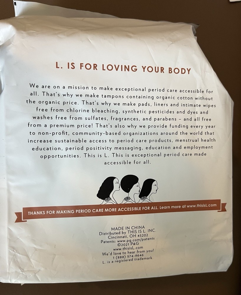 New in package L. Maxi Pads Extra Long Overnight with wings 20 count No Synthetic Pesticides, Dyes or Fragrances 100% pure cotton chlorine free top layer individually wrapped