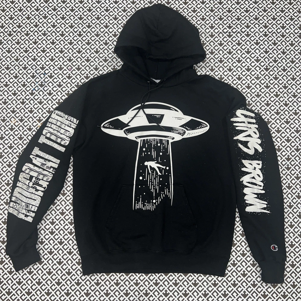 This Chris Brown Indigoat Tour hoody is a must-have for any fan of the R&B & Soul star. Featuring an exclusive patch from his 2019 tour, this Champion hoody is perfect for both casual wear and as a collectible item for music memorabilia enthusiasts. The hoody is a size M and is made from high-quality materials to ensure durability and comfort. Purchased from his Indigoat Tour in Washington DC. This is for a preowned and gently born official Chris Brown, indigo, tour hoodie. Champion, material hoodie, size medium, black, Chris Brown, and indigo tour graphics on sleeves. Hoody has official patch stitching on the back. See pictures for details shipping as USPS priority fast and secure. Includes tracking number for US residence only.