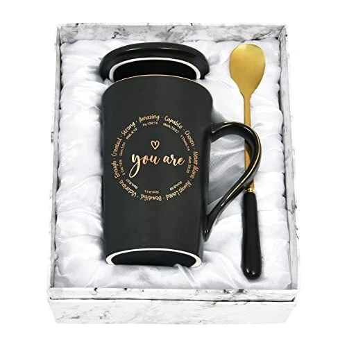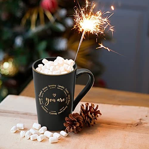 30 Days Return Policy Fast Delivery Trusted seller Christian Gifts for Women, You Are Inspirational Coffee Mug, Religious Gifts, Inspirational Spiritual Birthday Gifts for Women, Friends, Coworkers, Coffee Mug for Women 14 Oz with Gift Box Product Description INSPIRATIONAL GIFTS FOR WOMEN: This delicate You Are inspirational coffee mug with encouraging words quoted from bible verses will be perfect for women friends, female coworkers, sisters, mom, daughter, aunts, bosses as encouragement gifts, spiritual gifts, get well soon gifts, appreciation gifts for their birthday, Christmas, Thanksgiving and other big days to delight them. GORGEOUS GIFT PACKAGE: The christian gifts for women come with a beautiful marble texture gift box, so you can gift it directly without repacking. It also contains a nice gold spoon and a matched cup lid for better use. The inspiring words on the inspirational mug will bring you strength, faith and hope and gain you more confidence to face the difficulties in our life. DECENT QUALITY PRESENT: The adorable religious gifts for women are well made by skillful artisans with exquisite craftsmanship to ensure the premium quality. The coffee mugs are safe and sturdy to be used for years and the inspiring shinning golden characters on them are uneasy to fall off. PERFECT MUG CAPACITY: The birthday gifts for women are designed with 14 Oz capacity, can meet almost all your daily needs of a variety of cold or hot drinks such as coffee, tea, orange juice, soda, hot chocolate and etc. You can use it to enjoy your favorite drinks at home, in garden and office. HUMANIZED REASONBLE DESIGN: The encouragement gifts for women are equipped with a reasonable C-shape handle which is comfortable to hold in your hands and anti-slip matte bottom to prevent from sliding from the table. It is also dishwasher safe and can be easily cleaned by hand wash. Shipping Returns Payment Shipping Shipping is FREE to all addresses other than APO/PO boxes in the lower 48 states. All our stock ships from US-based warehouses. Shipped via USPS or UPS (depending on location and package weight) Unless stated otherwise, all orders will ship within 24-72 hours of your payment being processed. Check our feedback to see the great reviews of FAST shipping we offer. Returns As our valued customer, we will do our best to make sure the product you receive arrives to you on time and as expected. If you are not satisfied with your purchase, please contact us within 30 days of receiving your order to process a return. Payment We currently accept payment via eBay managed payments only. Once payment is cleared, we will dispatch your shipment within 1-3 business days. Please refer to the "Shipping" tab for more information regarding shipping speed to your destination.