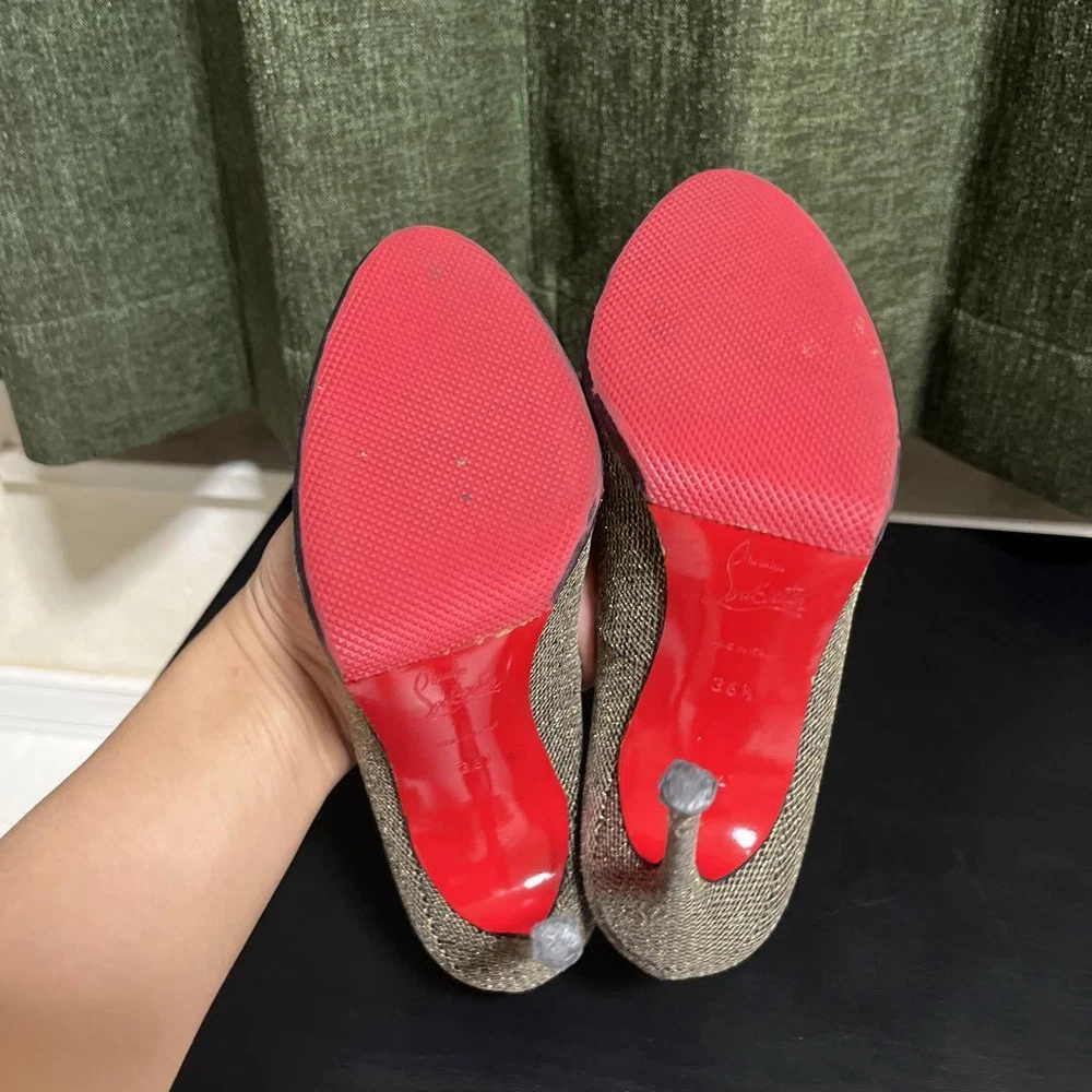 Christian Louboutin Gold Pumps Heels 36.5 EU (5.5 US) Used Sparkly Excellent+ Key Features **Product Description:** Elevate your style with these stunning gold-colored pumps, perfect for the upcoming season. Featuring a beautiful shimmer, these heels offer an elegant touch to any outfit. Please review the images for details on the condition, as there are some scratches. Returns and exchanges are not accepted to prevent item swapping. Comes with a dust bag. **Item Specifics:** - C:Exterior Color: Gold - C:Style: Pumps - C:Size: 36 1/2 - C:Department: Women - C:Product Line: Heels - C:Hardware Color: Gold - C:Condition: Used (scratches present) - C:Accessories: Dust bag Specifications Brand Christian Louboutin Country Japan US Shoe Size 5.5 Department Woman UK Shoe Size 4 Theme shoes EU Shoe Size 35 JP Shoe Size 22.5 Product Description Item Title Women 5.5US Christian Louboutin Pumps Heels Payment Supports managed payments Please pay within 5 days after auction is finished. About Us We are located in Japan. It's our pleasure to make you happy by proposing our recommend item. If you have any questions or request about items, please feel free to ask us. International Buyers - Please Note: -Import duties, taxes, and charges are not included in the item price or shipping charges. These charges are the buyer's responsibility. -Please check with your country's customs office to determine what these additional costs will be prior to bidding/buying. -These charges are normally collected by the delivering freight (shipping) company or when you pick the item up - do not confuse them for additional shipping charges. -We do not mark merchandise values below value or mark items as - gifts - The US and International government regulations prohibit such behavior. Thank you for your understanding.