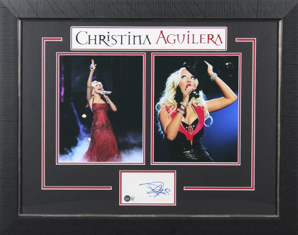 Press Pass Collectibles Football Trading Cards Photographs Framed Photographs Footballs Jerseys Framed Jerseys Game Used Helmets Mini Helmets Index Cards Lithographs Magazines Other Baseball Trading Cards Photographs Framed Photographs Baseballs Bats Jerseys Game Used Helmets Index Cards Lithographs Magazines Other Basketball Trading Cards Photographs Framed Photographs Jerseys Framed Jerseys Basketballs Game Used Floors Index Cards Magazines Other Hockey Trading Cards Photographs Jerseys Framed Jerseys Game Used Hockey Sticks Pucks Index Cards Magazines Other Boxing Photographs Framed Photographs Gloves Trunks Other Golf Photographs Balls Flags Index Cards Other Misc Sports MMA Olympic Racing Soccer Tennis Wrestling Other Celebrity Photographs Framed Photographs Books Magazines Posters Other Music Photographs Framed Photographs Performance Used Albums CDs Drum Heads Drum Sticks Guitar Posters Programs Other Historical Photographs Documents Military Space Other Presidential Photographs Baseballs Books Documents Magazines Other All Inventory 299.99 This Autographed 3x5 Index Card Framed Display has been Personally Signed by Christina Aguilera. This item is 100% Authentic to include a hologram by Beckett Authentication Services. This item will come with an affixed Beckett Authentication Services (BAS) authentication sticker, which includes a scannable QR code to verify authenticity. Please note that Beckett no longer provides serial-numbered COA cards, and the attached BAS sticker will serve as the complete authentication for this item. The authenticity can be verified on Beckett Authentication Services website. This item has been professionally framed to overall dimensions of approximately 21.5 x 27.5 inches. Product Details Signed By: Christina Aguilera Additional Info: Authenticated By: Beckett Details: The PPC Guarantee: Press Pass Collectibles (PPC) offers authentic in-person autographs that include a 100% money-back lifetime guarantee regarding the autograph's authenticity. Our items are sourced from PPC autograph signings or direct from leading suppliers of authentic memorabilia. The companies that authenticate these items include Beckett Authentication Services (BAS), Professional Sports Authenticator (PSA/DNA), James Spence Authentication (JSA), Steiner Sports, Upper Deck, Fanatics, Mounted Memories, and Tri-Star Productions. All autographed items come with a Certificate of Authenticity (COA) from these suppliers that includes a tamper proof hologram affixed to the item. Shipping: Press Pass Collectibles ships all orders via UPS, FedEx, or USPS within 24 business hours. We will combine shipping ! Additional items are typically $1 - $2 each, but cost may vary depending on dimensions and weight. Please contact us for a combined invoice prior to making your paymen t. PPC Exclusives: Press Pass Collectibles has exclusive autograph relationships with over 50 professional athletes and celebrities including Magic Johnson, Chevy Chase, Travis Kelce, DK Metcalf, Justin Jefferson, Randy Moss, Kyler Murray, Adrian Peterson, Baker Mayfield, Ray Lewis, George Kittle, Dak Prescott, Jerome Bettis, Chase Claypool, Deion Sanders, Jack Lambert, Mean Joe Greene, T.J. Watt, J.J. Watt, Tony Dorsett, Devin White, Tony Gonzalez, Emmitt Smith, Michael Irvin, Jason Witten, Jared Allen, Kurt Warner and more! Shop our entire collection