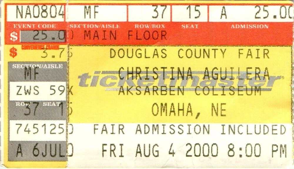 Christina Aguilera Concert Ticket Stub Douglas County Fair Omaha NE Aug 4, 2000 We are a family-owned business that takes your buying experience very seriously. Should you have any problems with anything, please do not hesitate to reach out and we will do everything within our power to make things right. We ship with tracking and take great care in packaging your items. We will combine shipping and send an invoice to combine, with multiple purchases!! Please visit our store to take a look at other great items! https://www.ebay.com/str/1098selling?_trksid=p2047675.l2563