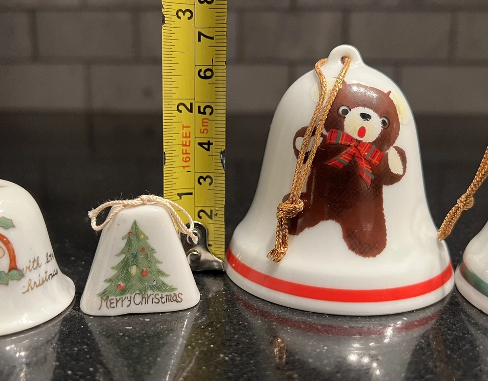 Christmas Bells Japan Vintage Lot Santa Mouse Bear Cardinal Tree. Teddy Bear Bell has a chip on underside. See picture. You are purchasing the exact item in the pictures. Please look close at pictures and ask any questions you may have so I don’t have to process any Returns. Sold AS IS. I have checked all items for imperfections and try to show as much detail in pictures as possible. What you see in the pictures is what you receive. Nothing more, nothing less. Photos are taken while packing items. Please check out my other vintage item listings. I will combine Shipping, but please notify me. To save cost I use recycled boxes and packaging. Please make sure your address is correct on your account, I use the eBay postage labels. Thank you!!
