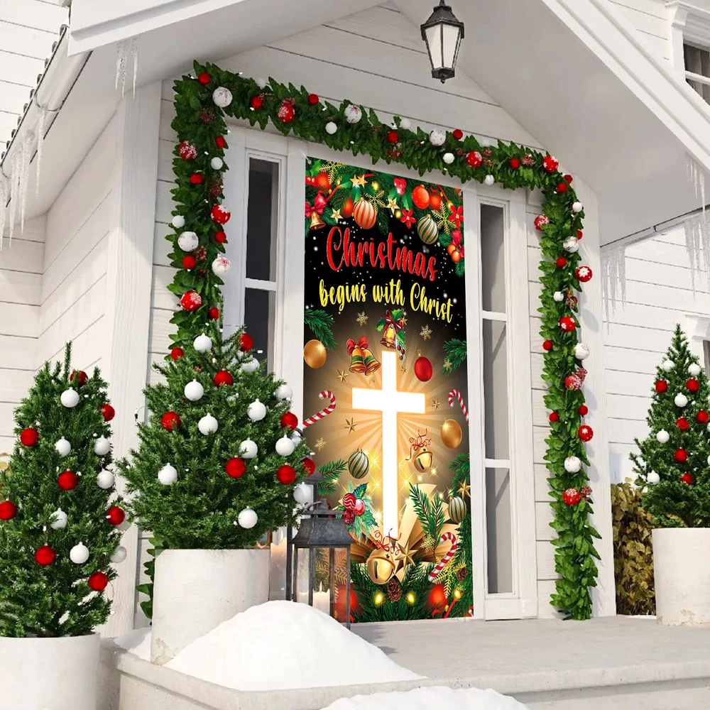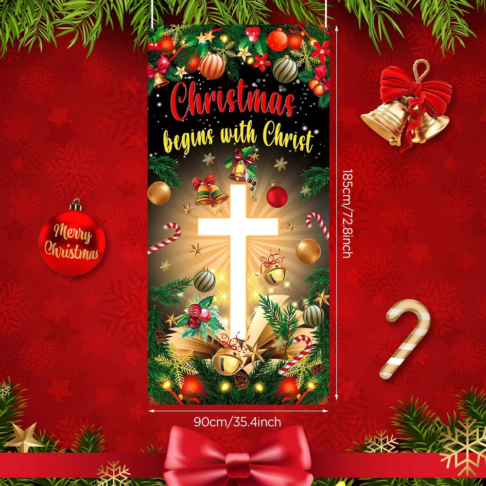 Specifications: Material: polyester Christmas porch banner size: approx. 185 x 90 cm/ 72.8x 35.4 inch Package includes: 1 x Christmas Door Cover Notes: 1. Please unfold it ahead of the party or lightly iron the banner if there are creases. 2. Manual measurement, please allow slight errors on size. 3. The color may exist slight difference due to different screen displays. Christmas Decorations for Home :You will receive 1 pieces of Christmas cross door cover, the Christmas begins with christ decortions backdrop is designed in green Christmas background and cross element, nice combination and attractive decorations for satisfying your outdoor Christmas decorations demands, easily stands out to catch everyone's eye. Suitable Size : The Christmas cross Christ decoration banner measures approx. 185 x 90 cm/ 72.8x 35.4 inch. The Christmas cross porch decoration banner is large enough to easily stands out to catch everyone's eye, easy to carry and store. Quality Material : The Green Christmas hanging banners are made of high-quality polyester fabric. It can be washed and ironed, weather resistant, reusable and durable. You can fold them up to easy to store for next years use after using. Easy to Hang : There are copper holes at 4 corners of the Christmas door banner. It comes with a 20 feet white string so it's easy to be installed to anywhere you want. Wide Application : These Christmas door cover is perfect for Xmas holiday winter birthday party front door decoration, front porch, doorways halls, fireplace, entryway, garden fences, decks and other places you want, fit for both indoor and outdoor, can create Christmas party atmosphere.