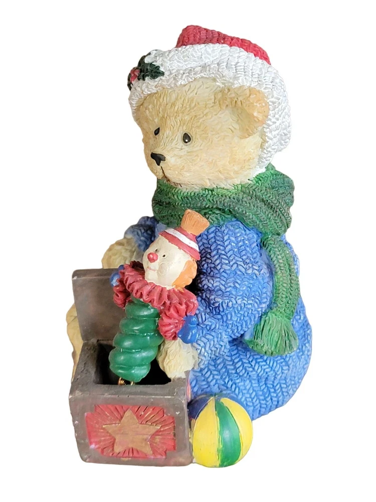 Vintage Christmas Decoration Teddy Bear w/ Jack In The Box is a multicolored, 3"x4" table top ornament made from poly-resin. Covered in an all-over pattern, it's a festive addition to any home. • Brand: Unbranded • Size: 3" D x 4" H • Color: Multicolored • Material: Poly Resin • Style: Table Top Ornament, Christmas Decor • Pattern: All Over Pattern Features: • Very Detailed • Table Top Ornament, Christmas Decor Size: 3" D x 4" H Condition: Pre-Owned Good Good Condition Gently Used Please be sure review all photos and description closely before purchasing, thank you! Smoke free work space Please read the description for further details and measurements, Thank you!