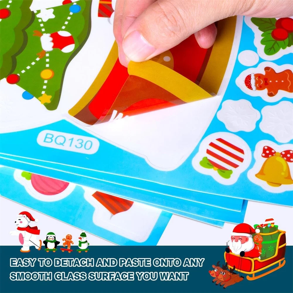 Christmas Decorations -- Christmas decorations includes 159 Pcs 6 sheets Christmas window clings for glass windows.Thes size of each windows stickers is 7.74"x11.8".They can meet your window sticker needs for Christmas. Christmas Window Stickers -- 6 sheet window stickers are closely related to the Christmas theme, whose decorative patterns such as Santa Claus, christmas tree, snowflakes, snowman, reindeer, gifts, etc., creating a joyful festive atmosphere for Christmas holiday. Christmas Decor -- Before using winter christmas window clings, wipe the surface of the glass with a damp towel or spray it with water, then stick and use a card to scrape off any bubbles on the surface for the best effect. Widely Applications -- The window sticker is perfect for indoor decoration at Christmas parties. As long as the surface is smooth, the window sticker can be used. For example, windows, doors and windows, mirrors, glass, etc. Holiday Decorations -- The window sticker package features a variety of different styles of patterns, designed with fun Christmas characters and elements as its features, making the atmosphere of the Christmas holiday even stronger.