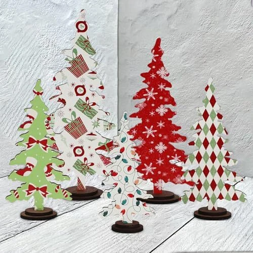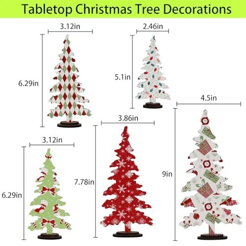 30 Days Return Policy Fast Delivery Trusted seller Christmas Decorations - 5PCS Wooden Christmas Tree Tabletop Decor Sign - Rustic Decorative Freestanding Christmas Tree Centerpiece for Home Shelf Mantel Product Description Enchanting Christmas Scenes -- Transform your space into a joyful wonderland with our wooden Christmas trees which can be put together as a set or divide up during the fun holiday. Exquisite Craftsmanship -- The pack includes 5 intricately designed Christmas classic-style wooden trees in 4 sizes. Slotted base allows the trees to stand securely which makes them easy to store away or future use. Premium Quality -- Made of real wood material, these christmas table centerpieces stand out with exceptional creativity, vibrant patterns, and quality craftsmanship for a perfect seasonal look. Versatile Holiday Touch-- Elevate your holiday decor with chic Christmas centerpieces that effortlessly enhance your mantel, shelves, window ledges, tabletops, etc, or a fun stocking stuffer. Happy Holiday! -- Let the vintage Xmas accents bring a glint of warmth to festive occasions. Share the holiday spirit with family and friends as these charming decorations spread Christmas cheer throughout your home. Shipping Returns Payment Shipping Shipping is FREE to all addresses other than APO/PO boxes in the lower 48 states. All our stock ships from US-based warehouses. Shipped via USPS or UPS (depending on location and package weight) Unless stated otherwise, all orders will ship within 24-72 hours of your payment being processed. Check our feedback to see the great reviews of FAST shipping we offer. Returns As our valued customer, we will do our best to make sure the product you receive arrives to you on time and as expected. If you are not satisfied with your purchase, please contact us within 30 days of receiving your order to process a return. Payment We currently accept payment via eBay managed payments only. Once payment is cleared, we will dispatch your shipment within 1-3 business days. Please refer to the "Shipping" tab for more information regarding shipping speed to your destination.