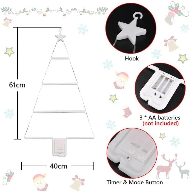 Store New Arrivals Add to Favorite View Feedback Contact Fast deliveries to the customer's home Quality customer service John Make the customers happy! Christmas Decorations Lights, LED Christmas Ladder Light 2Ft, 8 Modes & Timer Battery Christmas Lights, Xmas LED Ladder Tree Light for Window Wall Home Garden Outdoor Indoor Decor (Multicolor) Description Battery Christmas Decorations Lights - Unique Designed LED Ladder Lights powered by 3*AA battery(not included). It looks like a lighted Christmas tree, funny and cute. Great for window wall door decorations.You can also DIY this lights with little toys hanging on it as a Christmas tree lights. 8 Modes and Timer & Memory Function: The Christmas decorations lights come with 8 lighting modes (Combination/ In waves/ Sequential/ Slo-Glo/ Chasing/ Slow fade/ Twinkle/ Steady on), that can meet your various decor needs. There are two buttons on the battery case of the led Christmas lights, short press "MODE&OFF" button to change mode, press "TIMER" button to activate timer function. Built-in Memory chip will saving your last mode setting and no need to reset mode every time. Waterproof and Safe & Easy Installation: The battery hanging Christmas lights can withstand all kind of weather, including heavy rain and snow. And it is powered by 3*AA battery, safe to touch. The Christmas lights come with a hook, you can easily hang or put the lights anywhere you like, suitable for Christmas indoor home decor, also can be your good choice for outdoor Christmas decorations. Ideal Xmas Decor & Fashion Gift Idea - The window Christmas lights can be hung indoor or outdoor, creating a funny and festive atmosphere for your holidays. You can use it to decorate your house, garden, yard, home, wall, room, window and showcase. Also it could be used as top gifts for your family, children, lovers, friends, and colleagues during Christmas, New Year, Wedding, Party, Birthday and other occasions. Specification & Service: 63 bright Led on the 2ft high clear triangle rope lighted Christmas indoor lights, battery operated Multicolor outdoor Christmas lights. About the product quality problem, please don't hesitate to contact us via Amazon, we will give you a respond in 24 hours. Product Description 2023 Newest Christmas Decorations Lights, perfect for house, garden, home, wall, room, window decor. 1 Home Decorations 2 Wall Decorations 3 Window Decorations 4 Indoor Decorations 5 Outdoor Decorations Various Color Lights for your Christmas Decorations 2023 Newest Christmas Lights The LED Ladder Christmas Lights powered by 3*AA battery(not included). 8 Lighting Modes The led Christmas lights come with 8 modes, that can meet your various needs. Easy Installation The xmas light come with a hook, you can easily hang or put it anywhere you like Unique Designed Decor Lights Perfect for window wall door decor, and you can DIY the light with xmas elements Timer & Memory Function The indoor decor lights come with timer (6h on, 18 off), built-in Memory chip. Ideal Xmas Decor You can use the lights to decorate your house, garden, yard, wall, room, window. Light Source Type LED Number of Items 1 Power Source Battery Powered Number of Light Sources 61 Control Method Touch Batteries Included? Yes Lighting Method LED Lamp Type Mood Light Batteries Required? Yes Material Plastic Installation Type Hanging Specific Uses For Product [POSSIBLE USES: Christmas decoration, Indoor home decor, Outdoor Christmas decorations, Window decoration, Wall decoration, Garden decoration, Home decoration, Party decoration] Included Components Battery Country of Origin China Water Resistance Level Waterproof Item Weight 8.8 ounces Connectivity Technology USB Base Material Plastic Special Features Rechargeable Special Feature Rechargeable Shade Color Multicolor Mounting Type Wall Mount Color Multicolor Package Dimensions 16.65 x 5.98 x 1.26 inches Is Waterproof True Shape ladder Recommended Uses For Product Decoration Switch Type Push Button, Touch Size 2ft ABOUT US We offer the best prices around on high quality products. Our E-store includes media such as books, movies, music and games while offering electronics, toys, sporting apparel, clothing, tools, general home, garden items and more. SHIPPING We are always working hard to ensure your package arrives as soon as possible. Please understand that some factors like weather, high postal traffic, and the performance of shipping companies are outside of our control. We offer free shipping to the lower 48 states and ship within 2 business days of payment, usually sooner. We do not accept P.O. Boxes. Please provide a physical address. For shipping outside of the continental USA, we only use eBay's Global Shipping Program. The item is shipped to KY and then sent to the rest of the world. International customers are responsible for all duties and taxes. Continue to 'check out' to calculate costs for shipping the item to your country. Messages regarding eBay's Global Shipping Program MUST be directed at eBay EXCLUSIVELY. RETURNS We offer a 30-Day Return Policy on items in which you are not completely satisfied with. You have the option of a full-refund or an exchange of the item. No returns are available on items shipped outside of the USA PAYMENT We accept PayPal. CONTACT US This page content is yet to come Please ad us to your favorite seller and visit again later Thank You CUSTOMER SATISFACTION We try our very best to make sure every customer is completely satisfied. If there's a problem, message us! We're happy to help. WE ACCEPT
