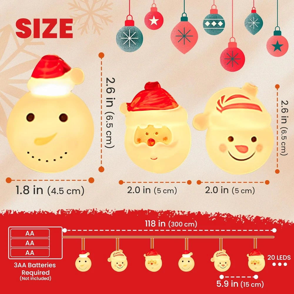 Christmas Decorations Twinkle Lights For Christmas Tree 20 LED 9.8FT Christmas 20 LED Cute Christmas Lights:The length of twinkle lights for christmas tree light is perfect and the distance for each light is 5.9in, which will provide a nice bright and festive atmosphere Mix and Match Santa and Snowman Lights : Our led christmas tree lights is eqquipped with three different dolls, a red-hatted Santa, a smiling Santa, and a cute snowman, quality and artistry are very good Battery-operated & Water-proof : Our christmas light bulbs are battery powered, no need to plug in ,Our string lights wire is made of high quality copper wire, the outside of the wire is wrapped with a waterproof cover, which is very convenient for indoor and outdoor use, and can be stored and reused Two Lighting Modes: Our christmas lights outdoor decorations has two modes .Constant and Twinkle Lights. The constant mode can bring continuous orange light to create a warm and bright atmosphere, Flashing lights can cater to Halloween atmosphere, adding a spooky and fun feeling Product Description Smiling Snowman Cute Santa Claus Smiling Santa Claus Excellent Christmas Decorations:Our christmas led lights a great decorative product to ensure a lively and upbeat christmas event Item model number HD24E002A Part Number HD24E002A Style Santa Claus,snowmen Number of Light Sources 20 Number of Items 1 Power Source Battery Powered Color Orange Light Color Orange Material Plastic, Copper Type of Bulb LED Batteries Required? No Package Dimensions 10.63 x 8.27 x 2.56 inches Item Weight 9.9 ounces Theme Chrismas Recommended Uses For Product Christmas decorations Special Features Twinkling, batteried operated, Blinking Shipping Fast shipping is very important for us. Our standard US shipping service is FREE. Your order will be shipped within 2-3 business days upon full payment received. Your order will be delivered within 2-3 business days after the handling time. We only ship to the confirmed PayPal address. We reserve the right to cancel any order for any reason at any time. We are not responsible for undeliverable addresses. Returns and payment We offer a 30 days return policy from checkout winning date. We allow only PayPal as payment method FeedBack Your feedback very important to us, after you get your package and you are satisfied with our service please leave us positive feedback If you have any problem with your order / any questions please before leave any type of feedback For any questions, using eBay contact system Please visit our eBay store to check out other items for sale! Thank you for shopping at our store.
