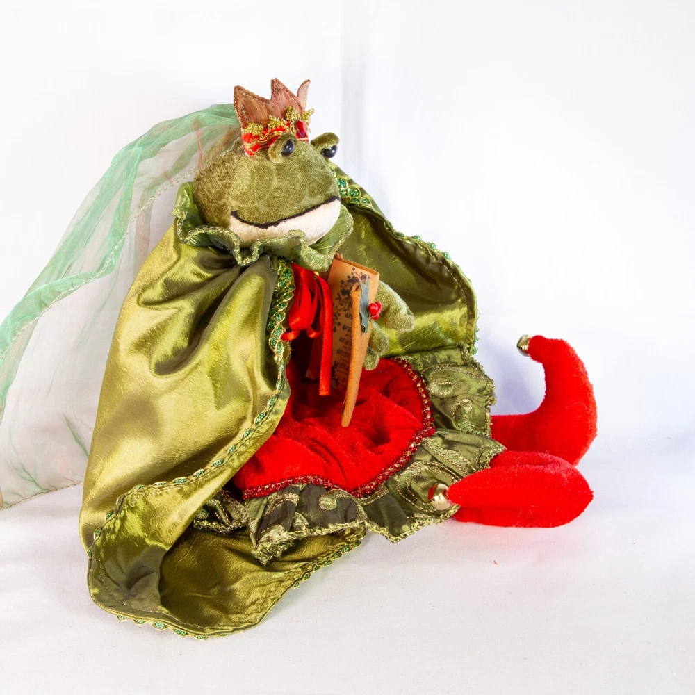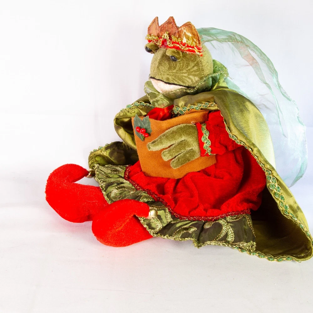 Christmas Frog Princess Red Green Plush Posable Holding Carol 14" Shelf Sitter