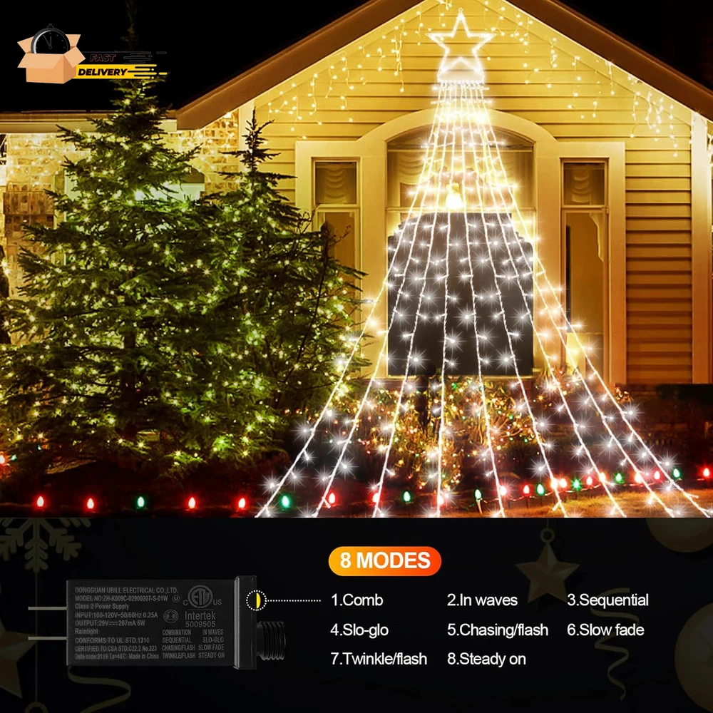Store New Arrivals Add to Favorite View Feedback Contact Christmas Lights Outdoor Decorations 344 LED Star Lights Easy to Install Waterproof Fairy String Lights 8 Modes Xmas Tree Lights for House Garden Party Wedding Holiday-Cool White Description Item model number BG-CL3M3-306L01 Part Number BG-CL3M3-306L01 Style Modern Material Polyvinyl Chloride (PVC) Power Source Corded Electric Color Cool White Number of Light Sources 344 Type of Bulb LED Batteries Required? No Item Weight 1.63 pounds Theme Christmas, Halloween, Thanksgiving Batteries Included? No Voltage 29 Volts Shade Material Metal Package Dimensions 13.39 x 12.4 x 2.24 inches Size 344LED 8 Modes Christmas Decoration Star Lights: The outdoor Christmas decoration star lights feature 344 LEDs, 1 metal star and 9 strings of lights at the end, each 11.5 feet long, resembling a comet. The twinkle Christmas lights are ideal for your outdoor and indoor decorations. Light up your home or backyard with this Christmas light display. 8 Lighting Modes & Waterproof : The Christmas star lights have 8 different light patterns: Combination, In Wave, Sequential, Slo-Glo, Chasing/Flash, Slow fade, Twinkle/Flash, Steady on. IP44 waterproof is perfect for outdoor use without any damage, including heavy rain and snow. Safe & Easy to use: Directly plug in and unplug the outside Christmas decorations star lights for power on and off. With a 29V low voltage adapter, this Christmas starlight is safe to touch and will keep at a low-temperature state after lighting up for hours, safe, power-saving, and eco-friendly. Ideal Gift & Decoration Choice: Christmas tree string lights with stars can be used as large outdoor tree ornaments, as a Christmas present for your family, friends, birthday, wedding, anniversary, etc. The beautiful Christmas tree lighting creates a better festive atmosphere and is the best choice for indoor and outdoor Christmas decorations. Upgraded LED Super Bright Christmas lights: Equipped with latest upgraded LED, The Christmas lights offers super bright light to add amazing atmosphere to decorate your holiday. With unique PVC intensified cord material, The fairy lights is strong, non-flammable and resistant to weather changes. LED beads are made of high durability and the energy efficiency material, saves up to 90% energy compared to traditional incandescent bulbs and last for at least 10 holiday seasons. Product Description JXLEDAYY Outdoor Christmas Decorations Star Lights Widely application: Perfect for yard,patio, garden, eaves, wall, window, bedroom, living room, wedding, party, birthday, Christmas, New Year, Festival decor etc. Features - Long wire: These lights work great with Christmas trees from around 8 feet to 13 feet tall. - Waterproof: It's IP44 waterproof, but the junction box has to be kept in a dry place. - Safe to Touch: The bulbs don’t heat up, which allows you to touch them anytime. - Memory function: It's easy to set the lighting in the previous mode without resetting it. Package Include: 1 x star string lights, 1 x adapter, 1 x User Manual ,9 x Metal insert Specification Product Name: 344 LED Christmas String Light LED Color: Cool White Material: Copper+plastic LED Quantity: 344 Waterproof grade: IP44 Mode: 8 Lighting Modes Wire Length: 5m(16.4ft) Memory Function The built-in memory chip of the Christmas decoration star lights can save your last mode setting, and there is no need to reset the mode every day. Safe Touch 29V Low-voltage plug, through the UL authoritative certification, long working hours also do not heat, people can safely touch. IP44 Waterproof The Christmas decoration star light reaches IP44 waterproof rating, can withstand light rain, perfect for outdoor indoor decoration. ABOUT US We offer the best prices around on high quality products. Our E-store includes media such as books, movies, music and games while offering electronics, toys, sporting apparel, clothing, tools, general home, garden items and more. SHIPPING We are always working hard to ensure your package arrives as soon as possible. Please understand that some factors like weather, high postal traffic, and the performance of shipping companies are outside of our control. We offer free shipping to the lower 48 states and ship within 2 business days of payment, usually sooner. We do not accept P.O. Boxes. Please provide a physical address. For shipping outside of the continental USA, we only use eBay's Global Shipping Program.The item is shipped to KY and then sent to the rest of the world. International customers are responsible for all duties and taxes. Continue to check out in order to calculate costs for shipping the item to your country. Messages regarding eBay's Global Shipping Program MUST be directed at eBay EXCLUSIVELY. RETURNS We offer a 30-Day Return Policy on items which you are not completely satisfied with. You have the option for a full-refund or an exchange of the item. No returns are available on items shipped outside of the USA. PAYMENT We accept PayPal. CONTACT US This page content is yet to come Please ad us to your favorite seller and visit again later Thank You CUSTOMER SATISFACTION We try our very best to make sure every customer is completely satisfied. If there's a problem, message us! We're happy to help. WE ACCEPT Copyright © 2021 AutoDS. | All Rights Reserved