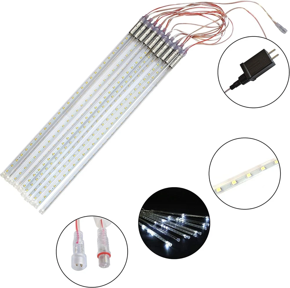Color White Brand Joiedomi Indoor/Outdoor Usage Outdoor, Indoor Special Feature Waterproof Power Source Corded Electric Light Color White Theme Holiday Occasion Christmas Style Modern Material Polycarbonate About this item PERFECT SIZE. The White LED Meteor Shower Rain Lights have 10 tubes on one strand, each tube is 50cm long, 540 LEDs. EXTENDABLE. Designed with a connector that can connect more than 2 lights together to suit wider occasions. We recommend connecting at most 4 strings to ensure all the lights work well and get the best brightness. PERFECT DECORATION SUPPLIES & WIDE APPLICATION. Each of the outdoor lights fall in sequence then have a slight delay on each tube, just like a meteor shower or falling snow across the night sky, which shows a super beautiful display. They are perfect to decorate trees along street/park/ river, hang along the roof, great for market engineering lighting, urban and architectural beautification. Ideal for patio, yard, garden, hotel hall, shopping mall decoration. PREMIUM QUALITY & WATERPROOF. Made of premium PC material that is transparent, you can see the light glow clearly through the tube. The Christmas light is waterproof, ideal for indoor & outdoor decoration, please protect the plug from the water or heavy raining day. Dustproof, corrosion-resistant, cost resistant, aging resistant, more durable that will last several years using. Safety test approved. CUSTOMER SATISFACTION. Providing a great satisfaction experience is our main priority to our customers. Feel free to message us through “contact seller” if products don't meet your expectations.
