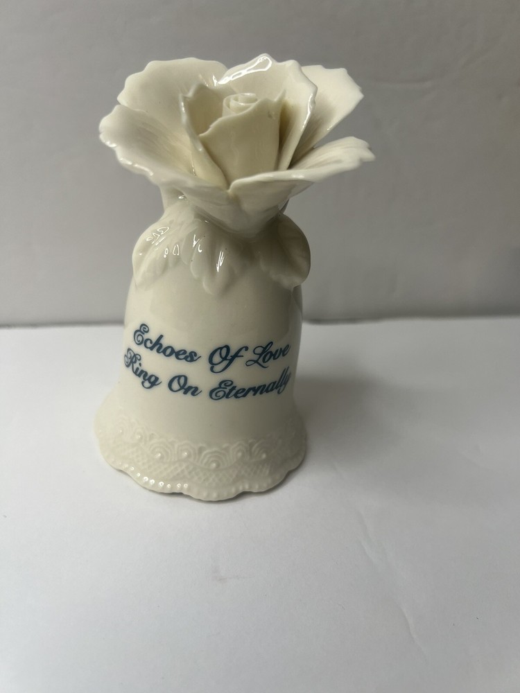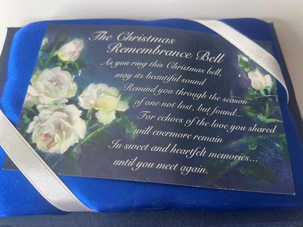 This beautiful Christmas Remembrance bell from ABBEY PRESS. With its ivory color and glossy finish, it looks like porcelain. The bell's chime is a beautiful echo of love that will ring on eternally. It has a satin bed inside the box. It has a card inside that reads-As you ring this Christmas bell, may its beautiful sound Remind you through the season of one not lost, but found...For echoes of the love you shared will evermore remain. In sweet and heartfelt memories...until you meet again. Fast shipping with USPS Ground Advantage with tracking and insurance. I generally ship next day after cleared payment.
