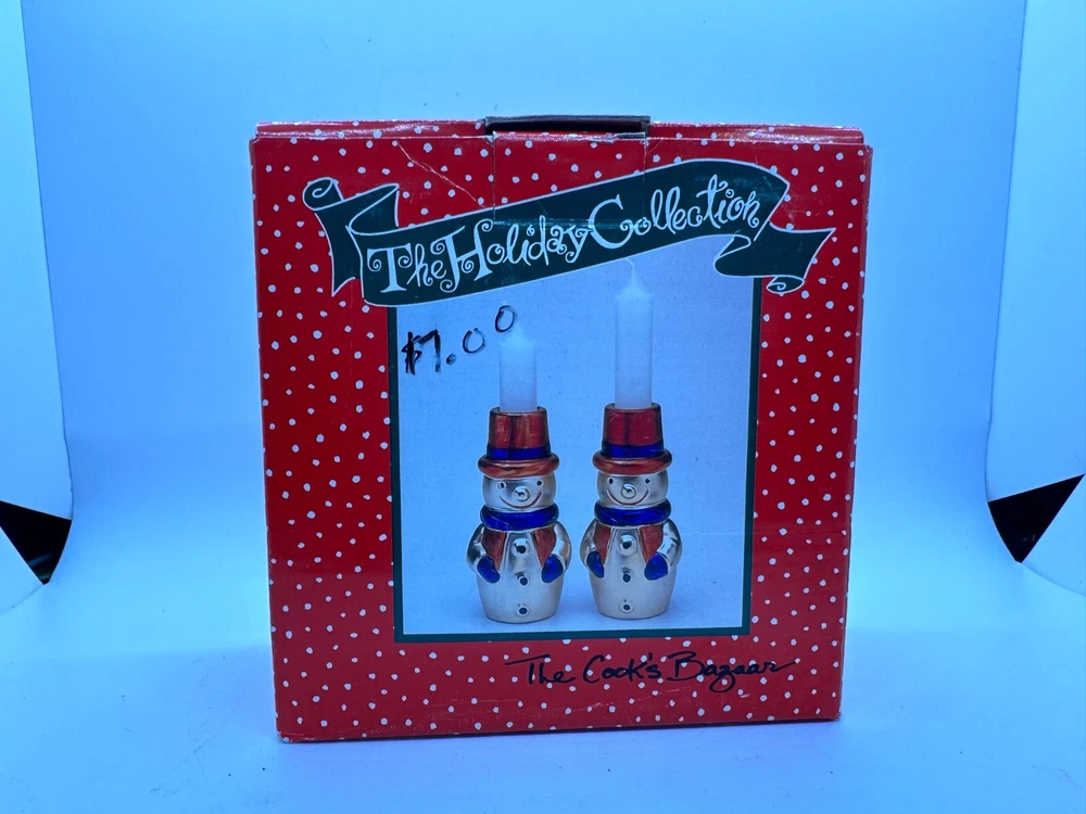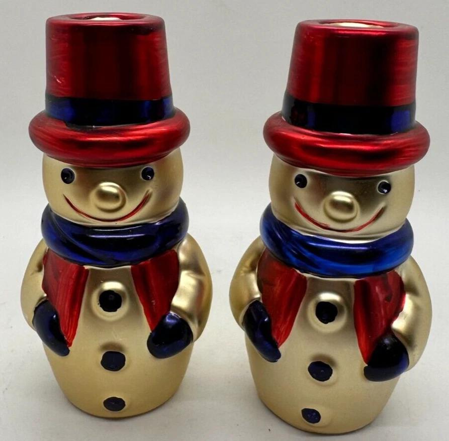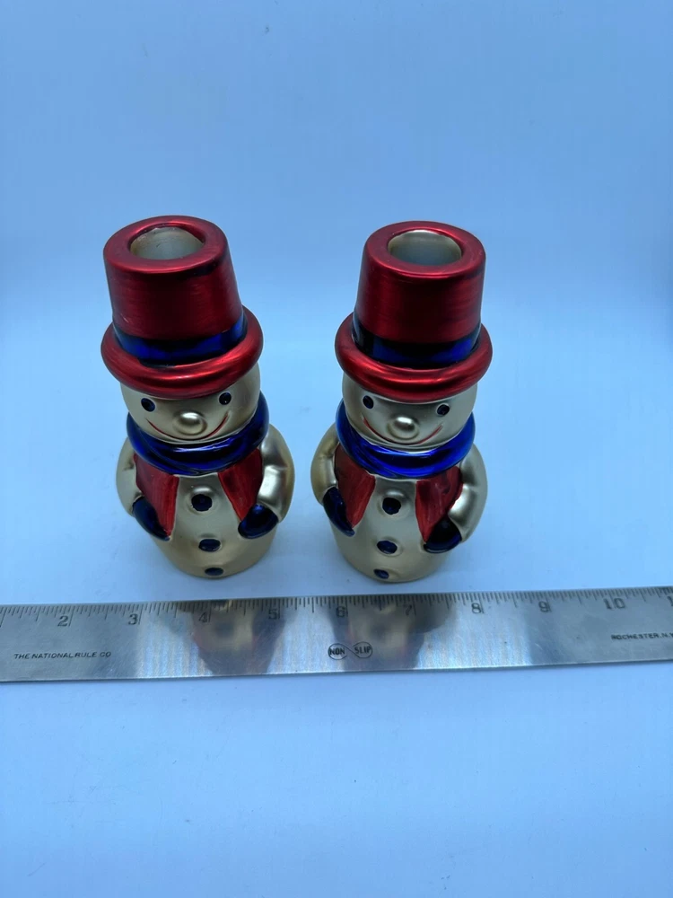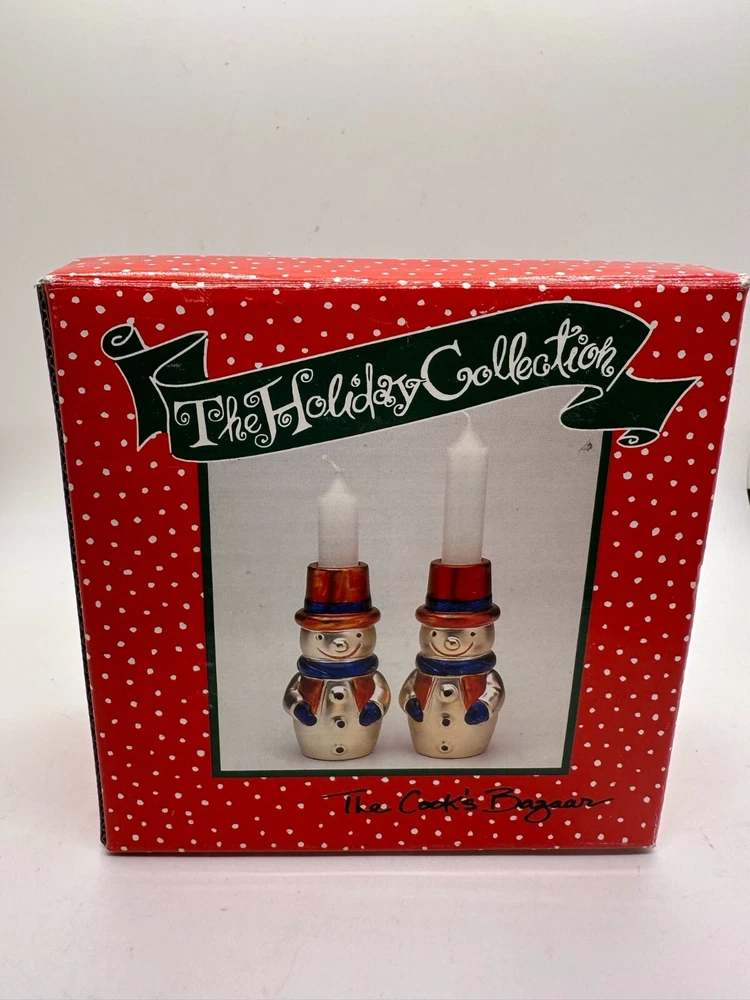 Christmas Snowman Candle Holders Cooks Bazaar Holiday Col. Goldtone Decoration