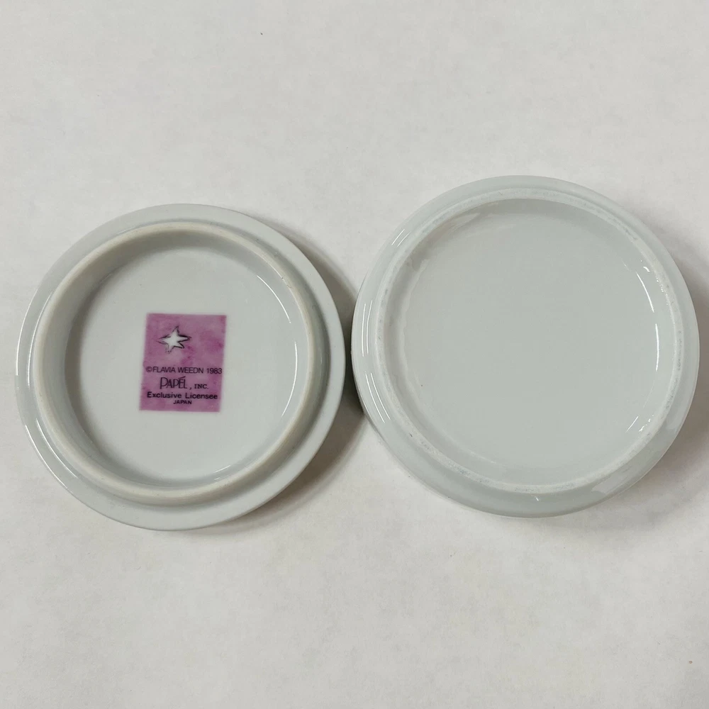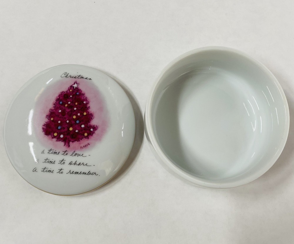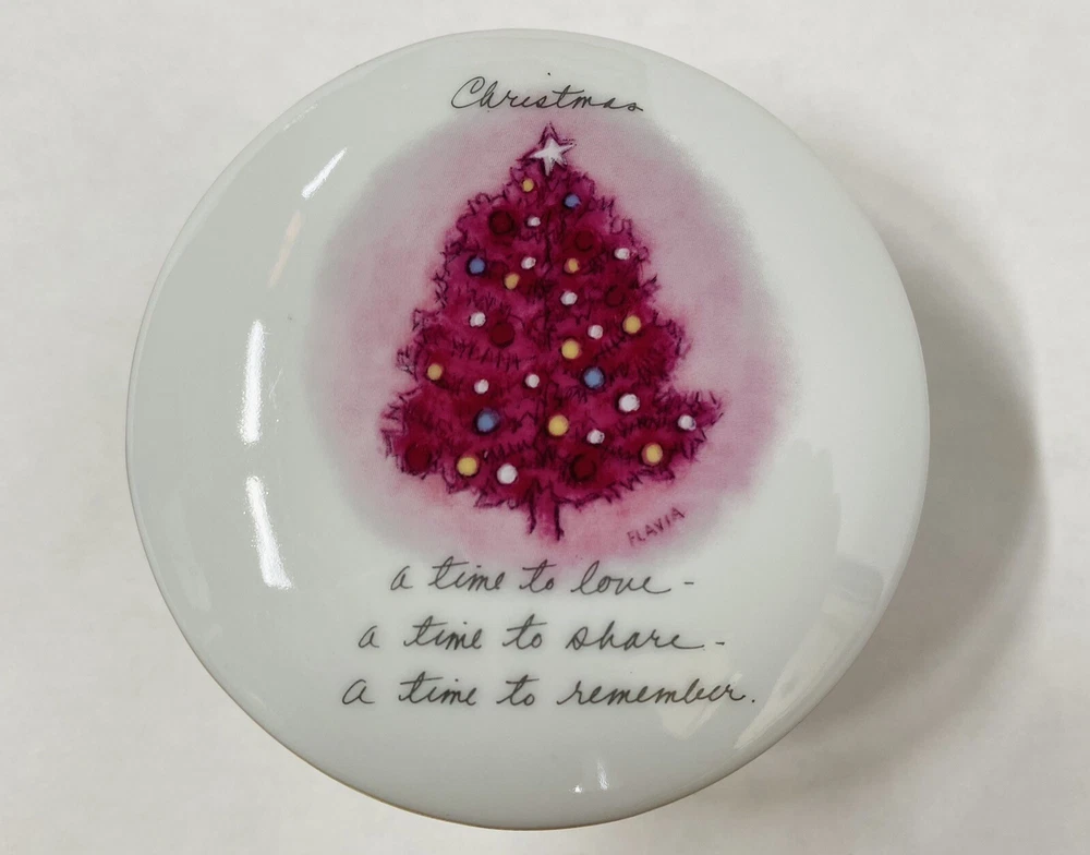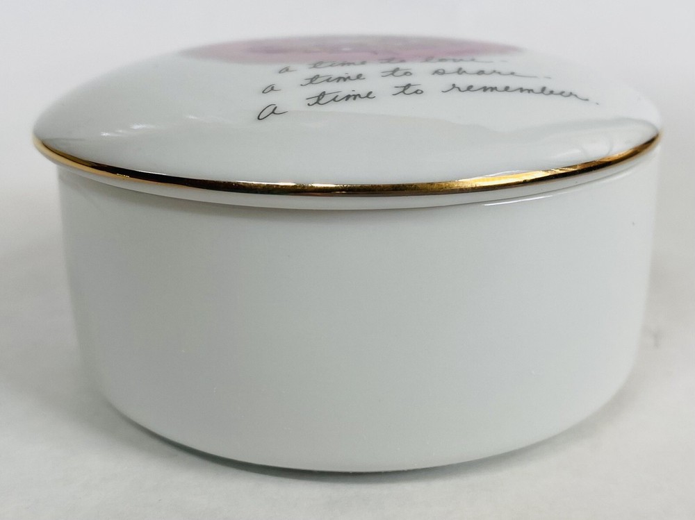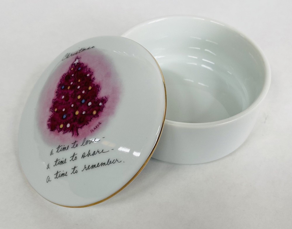 This is a colorful porcelain jewelry trinket box.m. . . Has written ‘A Time to Love.’ This Christmas Keepsake is perfect to give as a gift or to keep for yourself. It is in excellent Preowned condition. Marci Papel is the designer of this Darling piece of art.